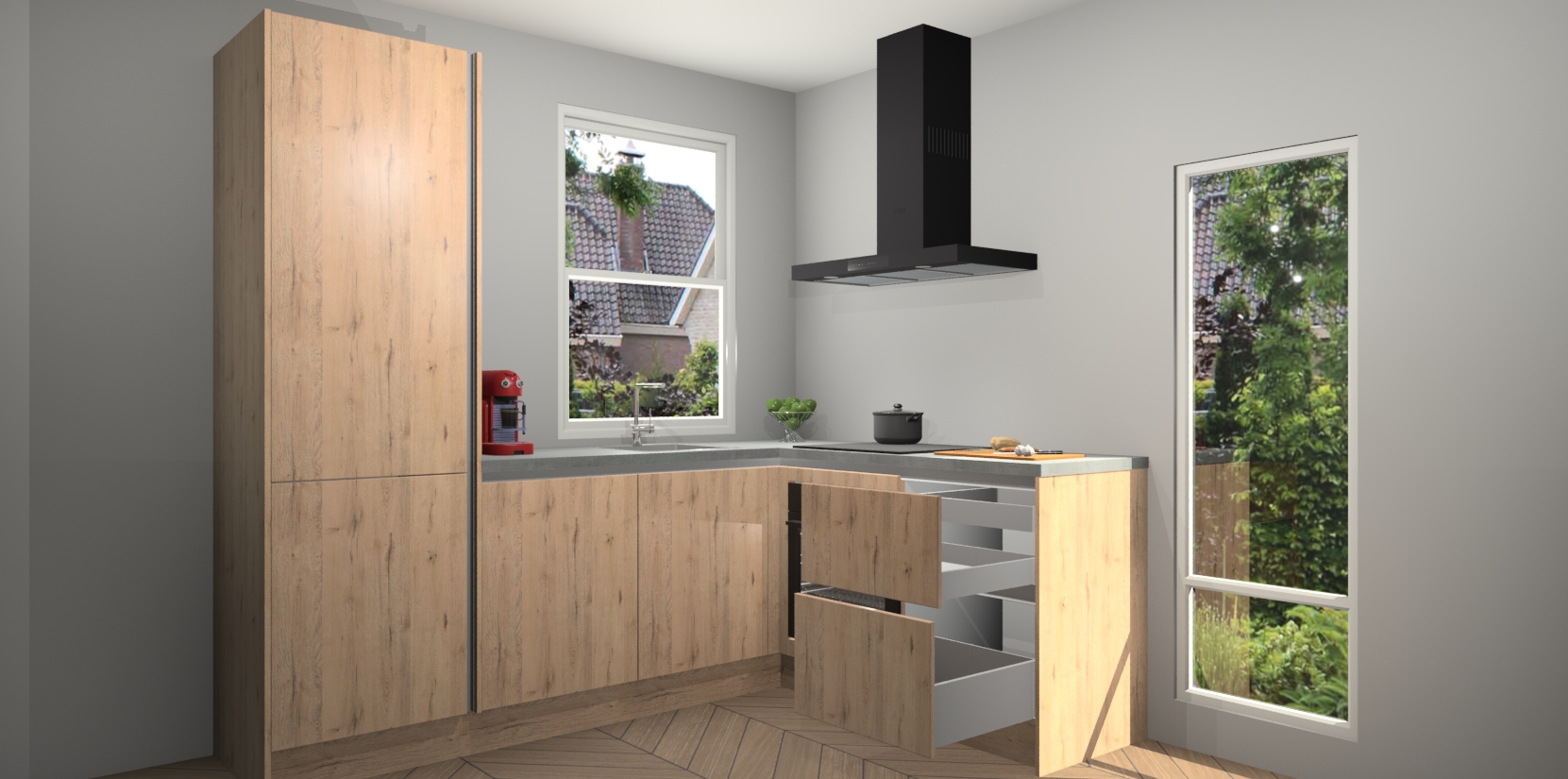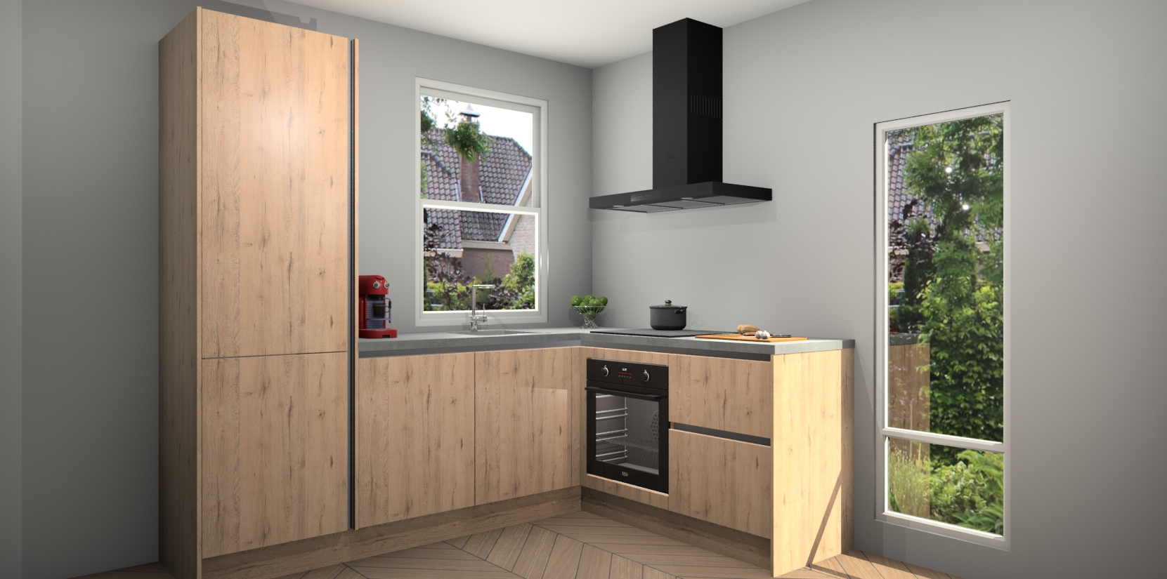 De prachtige Madera Natuur greeploze keuken Phuket is de perfecte keuze als u op zoek bent naar een moderne hoekkeuken met alle luxe en comfort die u kunt verwachten! De uitstraling in het houtlook-design draagt bij aan de warme sfeer die u nu al voelt wanneer u er naar kijkt. Heeft u genoeg van ouderwetse keukens? Probeer dan direct deze moderne, mooie hoekkeukens en laat iedereen verbluft achter!