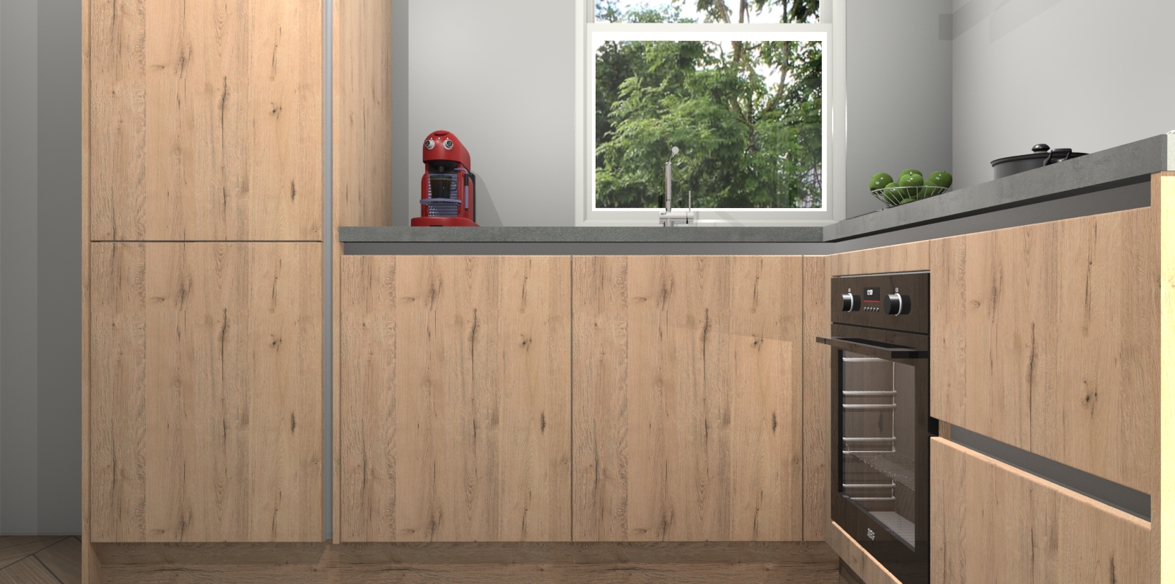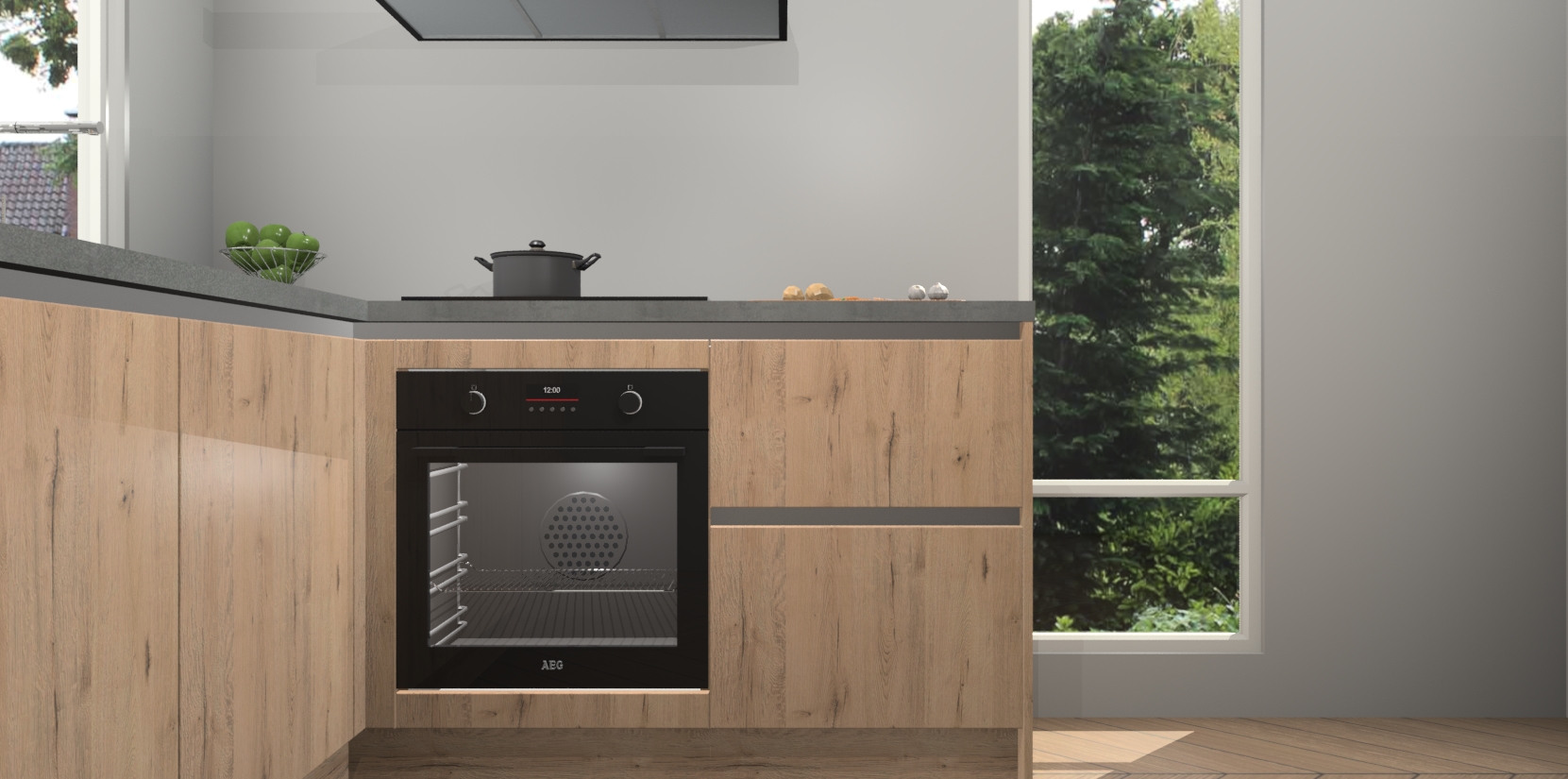 De Madera Natuur greeploze keuken Phuket heeft alles wat u maar kunt wensen. Niet alleen zijn er softclose deuren, maar ook 5 ingebouwde apparaten: een oven, inductiekookplaat, afzuigkap, vaatwasser en koelkast - waarbij u later gemakkelijk naar het AEG merk, van inductiekookplaat naar kookplaat met geïntegreerde afzuiging of van oven naar combimagnetron kunt upgraden. Dat alles tegen een vast laag tarief! Bovendien geeft de Madera Natuur greeploze keuken Phuket supersnelle levering van 7 weken. Echt iets voor u als u er niet op wilt wachten om het resultaat te zien in eigen keuken!