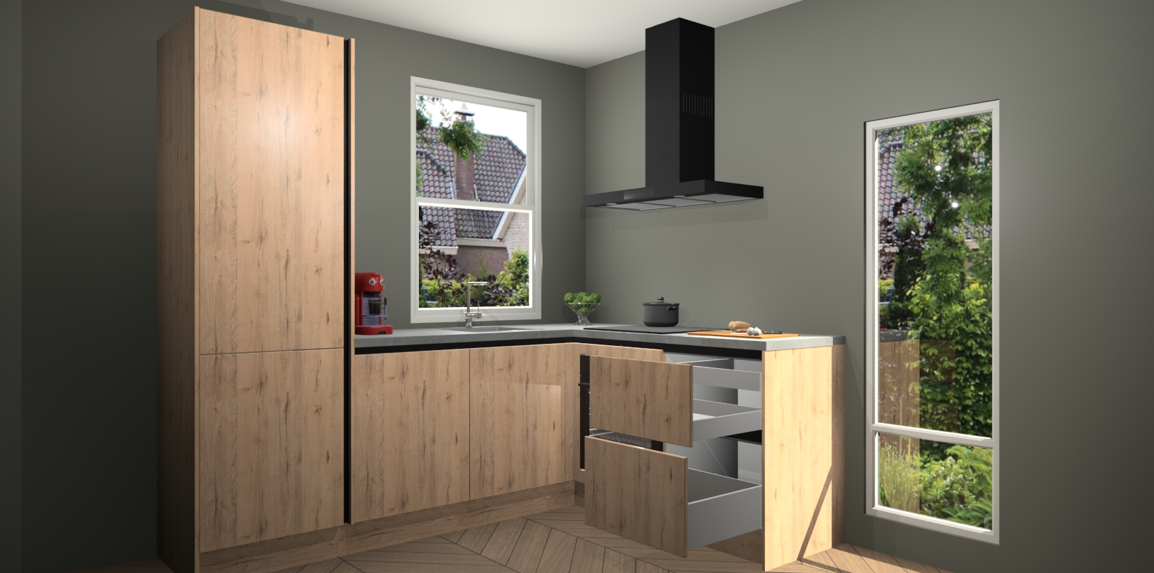 De prachtige Madera Natuur greeploze keuken Phuket is de perfecte keuze als u op zoek bent naar een moderne hoekkeuken met alle luxe en comfort die u kunt verwachten! De uitstraling in het houtlook-design draagt bij aan de warme sfeer die u nu al voelt wanneer u er naar kijkt. Heeft u genoeg van ouderwetse keukens? Probeer dan direct deze moderne, mooie hoekkeukens en laat iedereen verbluft achter!