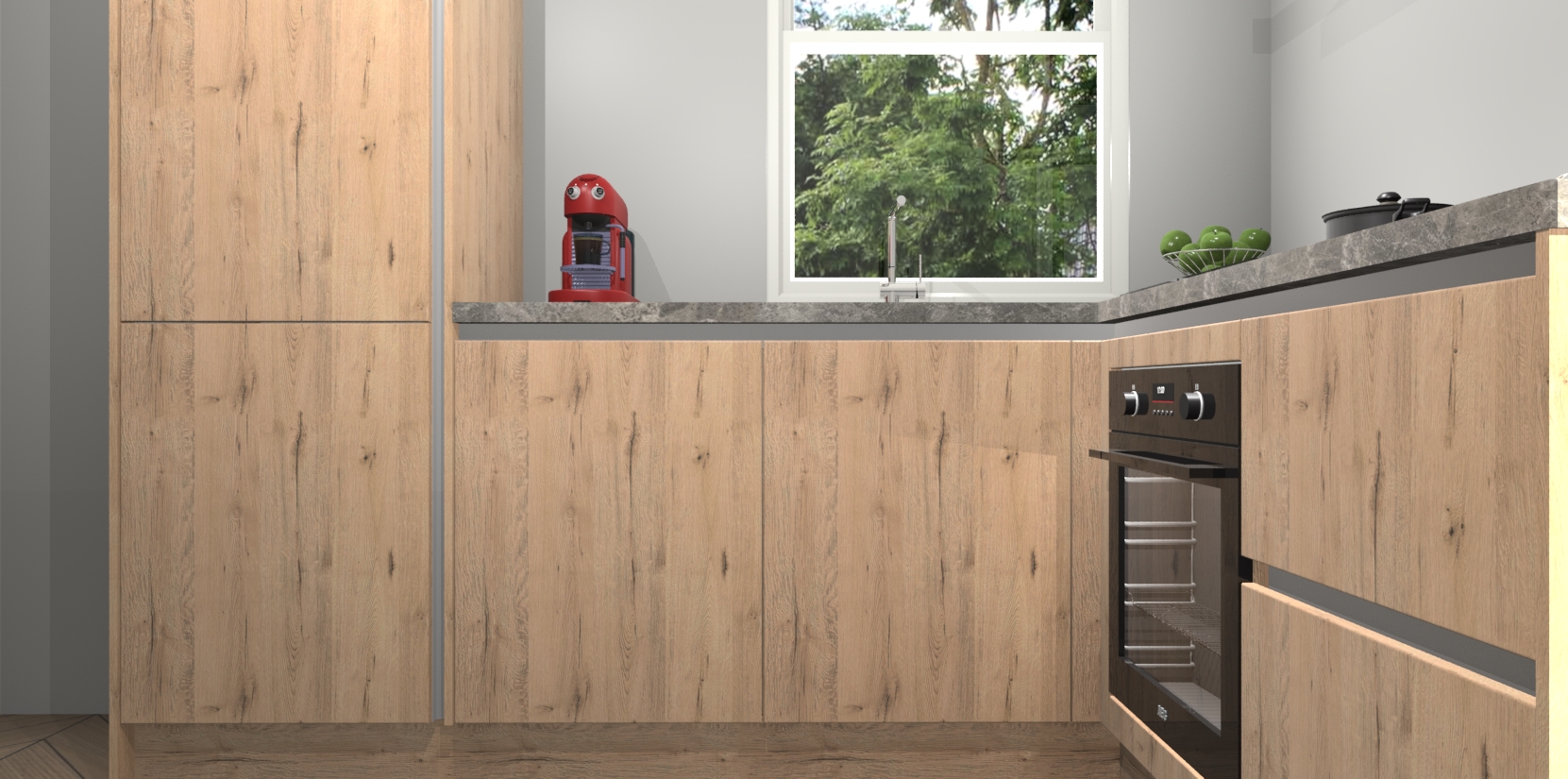 De Madera Natuur greeploze keuken Phuket heeft alles wat u maar kunt wensen. Niet alleen zijn er softclose deuren, maar ook 5 ingebouwde apparaten: een oven, inductiekookplaat, afzuigkap, vaatwasser en koelkast - waarbij u later gemakkelijk naar het AEG merk, van inductiekookplaat naar kookplaat met geïntegreerde afzuiging of van oven naar combimagnetron kunt upgraden. Dat alles tegen een vast laag tarief! Bovendien geeft de Madera Natuur greeploze keuken Phuket supersnelle levering van 7 weken. Echt iets voor u als u er niet op wilt wachten om het resultaat te zien in eigen keuken!