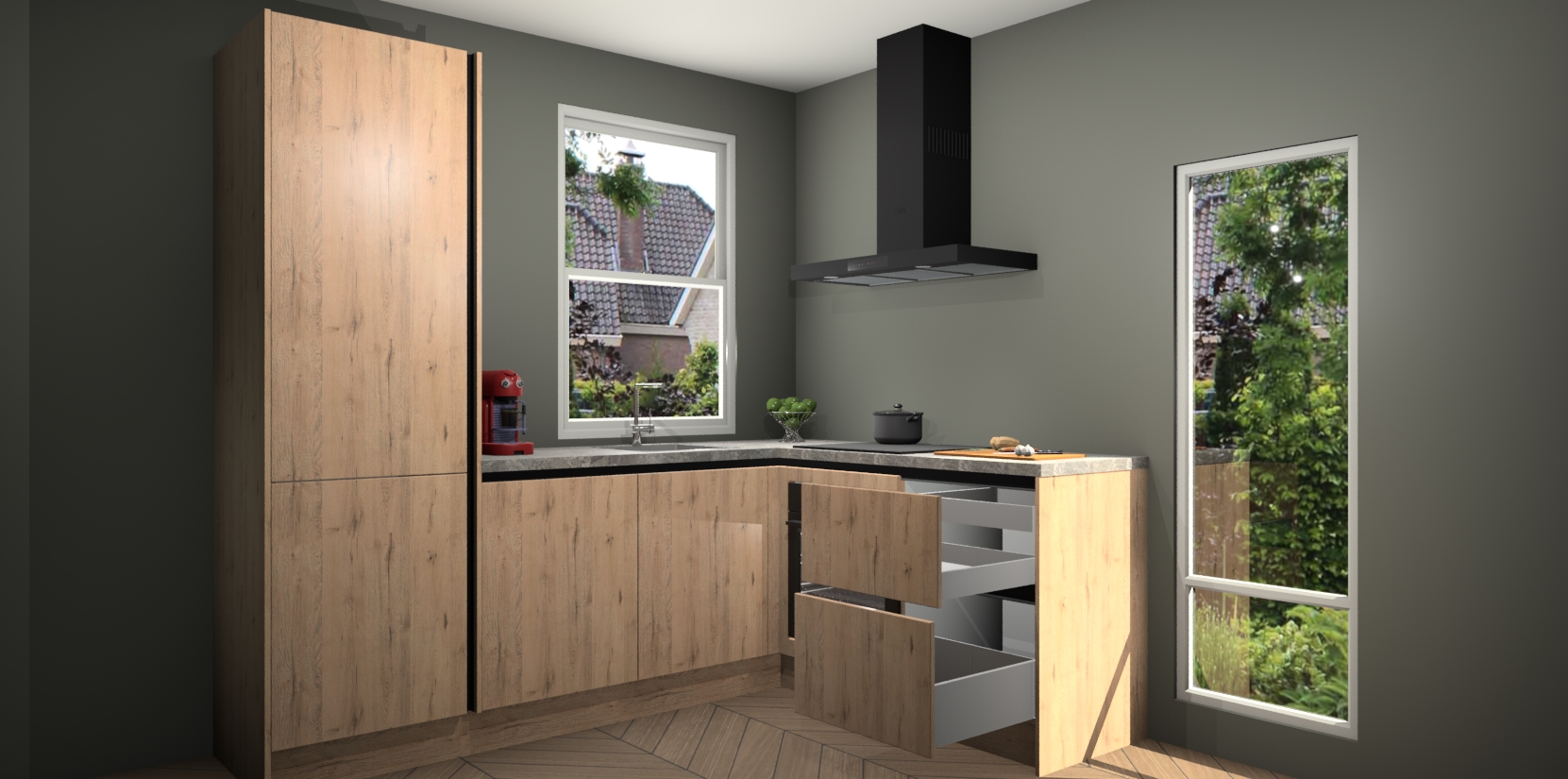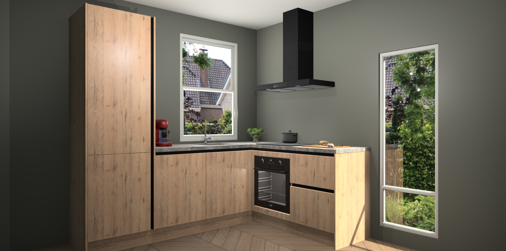 De prachtige Madera Natuur greeploze keuken Phuket is de perfecte keuze als u op zoek bent naar een moderne hoekkeuken met alle luxe en comfort die u kunt verwachten! De uitstraling in het houtlook-design draagt bij aan de warme sfeer die u nu al voelt wanneer u er naar kijkt. Heeft u genoeg van ouderwetse keukens? Probeer dan direct deze moderne, mooie hoekkeukens en laat iedereen verbluft achter!