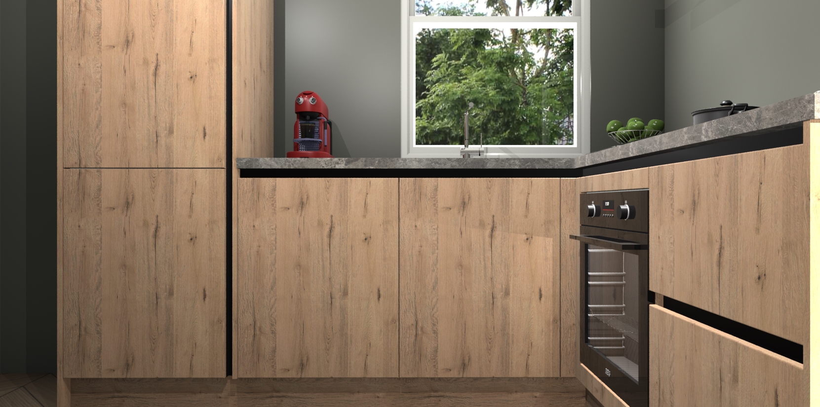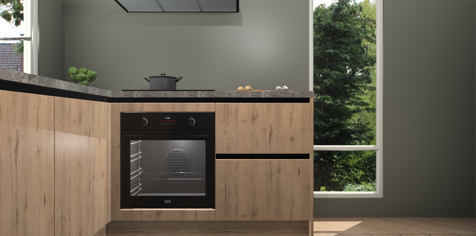 De Madera Natuur greeploze keuken Phuket heeft alles wat u maar kunt wensen. Niet alleen zijn er softclose deuren, maar ook 5 ingebouwde apparaten: een oven, inductiekookplaat, afzuigkap, vaatwasser en koelkast - waarbij u later gemakkelijk naar het AEG merk, van inductiekookplaat naar kookplaat met geïntegreerde afzuiging of van oven naar combimagnetron kunt upgraden. Dat alles tegen een vast laag tarief! Bovendien geeft de Madera Natuur greeploze keuken Phuket supersnelle levering van 7 weken. Echt iets voor u als u er niet op wilt wachten om het resultaat te zien in eigen keuken!