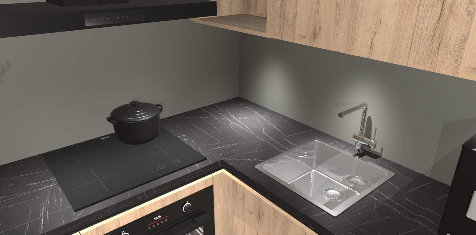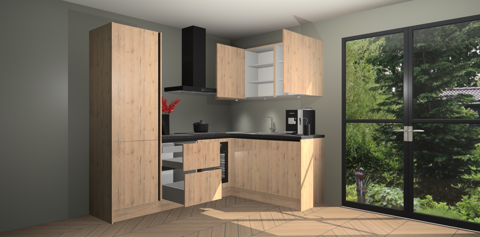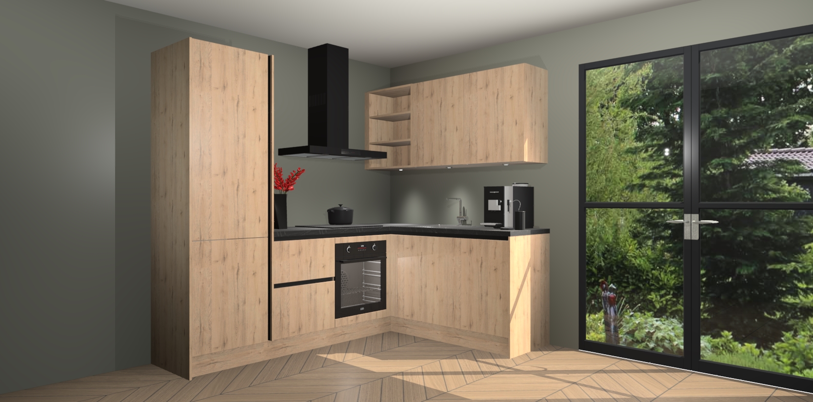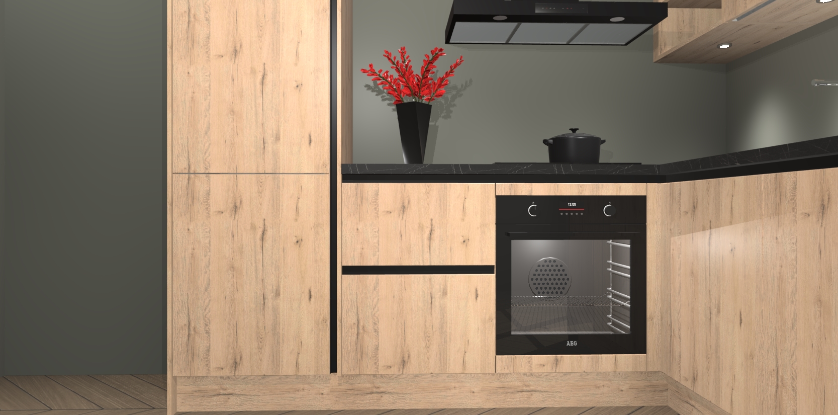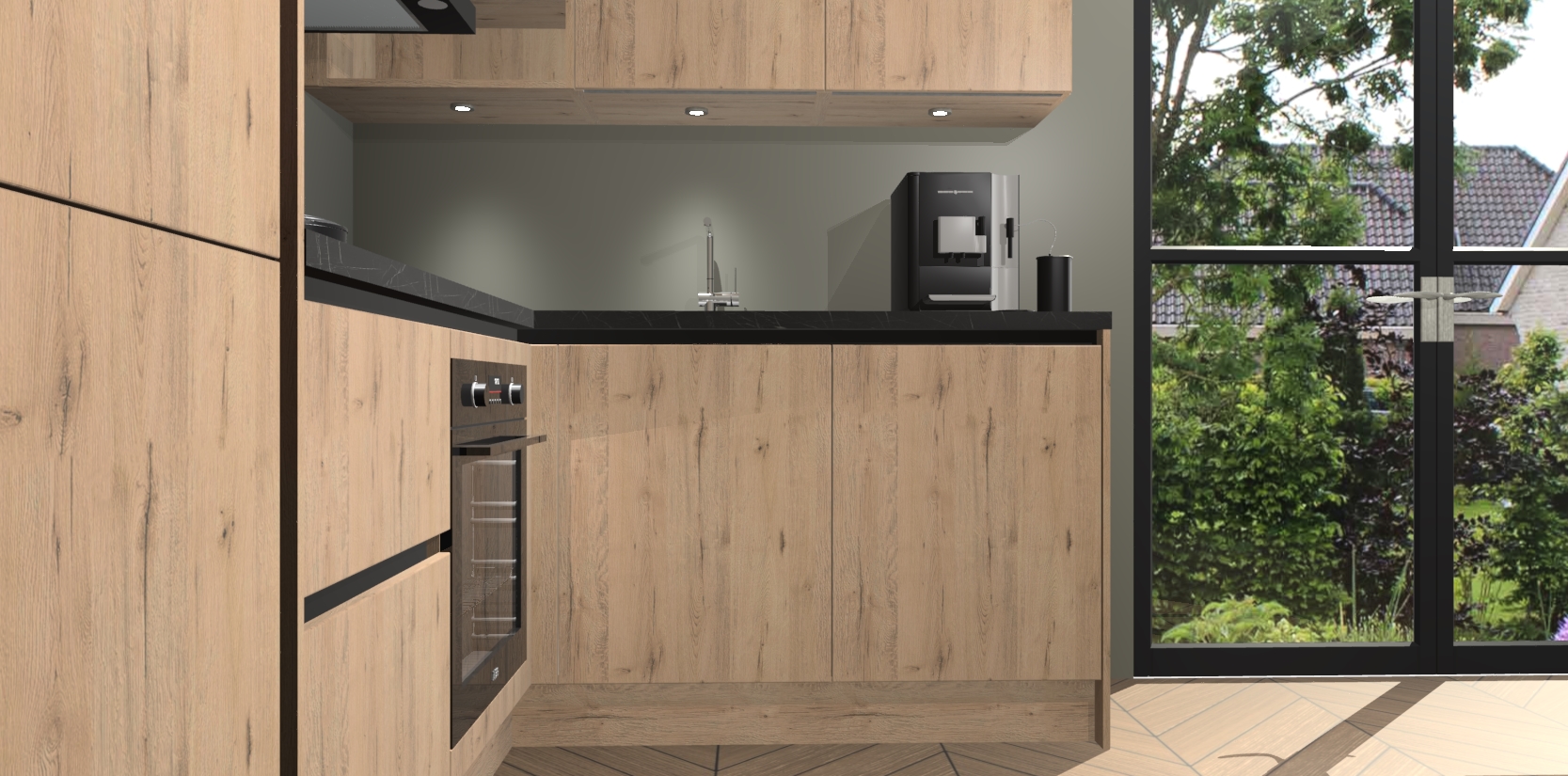 Wauw, dit is de Madera Natuur greeploze keuken Pilsen! U kunt gerust zeggen dat u elegantie combineert met functionaliteit met deze keuken. Met een modern en chique ontwerp is de keuken precies wat u nodig heeft om uw ruimte te verfraaien. De binnenzijde van de kasten is in dezelfde donkere kleur als de buitenzijde voor een uniforme look, compleet met softclose-kasten die stil sluiten.