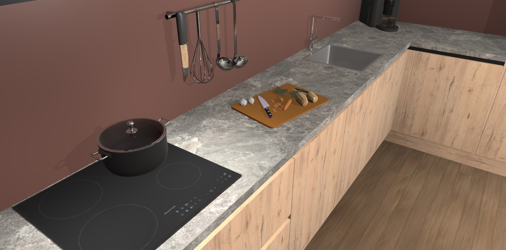 - Bij een hoekwerkblad zijn de hoeken in gevreesd en op maat gemaakt
