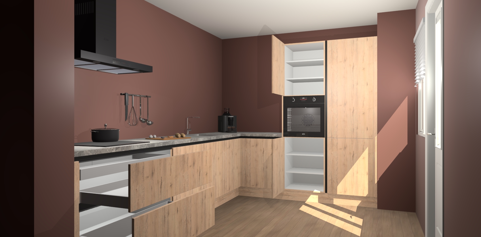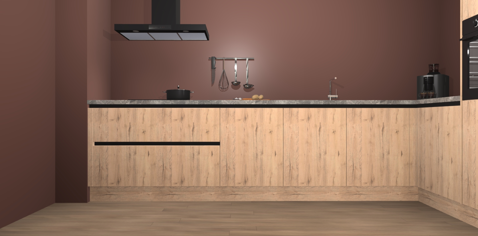 Welkom bij de Madera Natuur greeploze keuken Portland. Deze prachtige keuken zal de komende jaren het middelpunt van de belangstelling in uw huis zijn. Uitgerust met vijf inbouwapparaten komt u nooit kookgereedschap tekort. Bovendien geeft de warme houtlook elke ruimte een uitnodigende en tijdloze uitstraling.