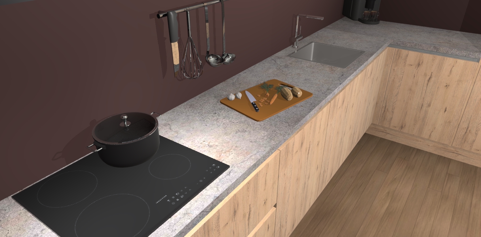 - Bij een hoekwerkblad zijn de hoeken in gevreesd en op maat gemaakt