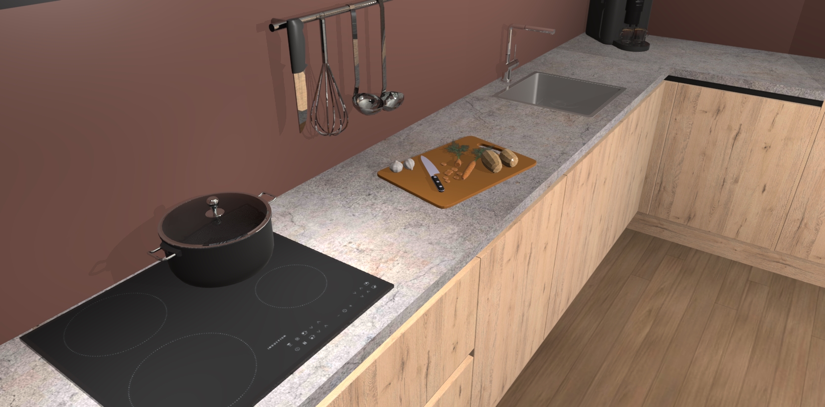 - Bij een hoekwerkblad zijn de hoeken in gevreesd en op maat gemaakt