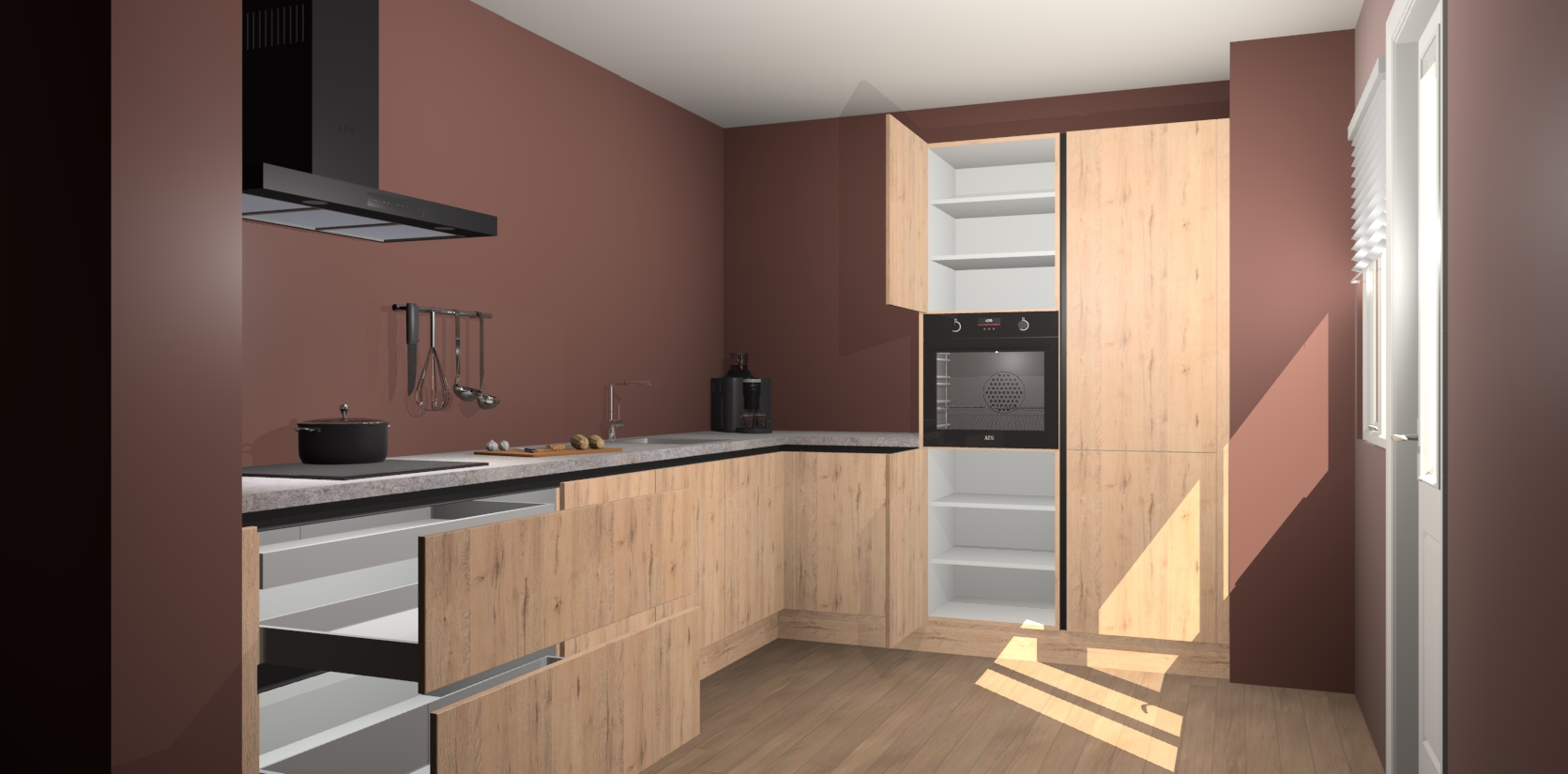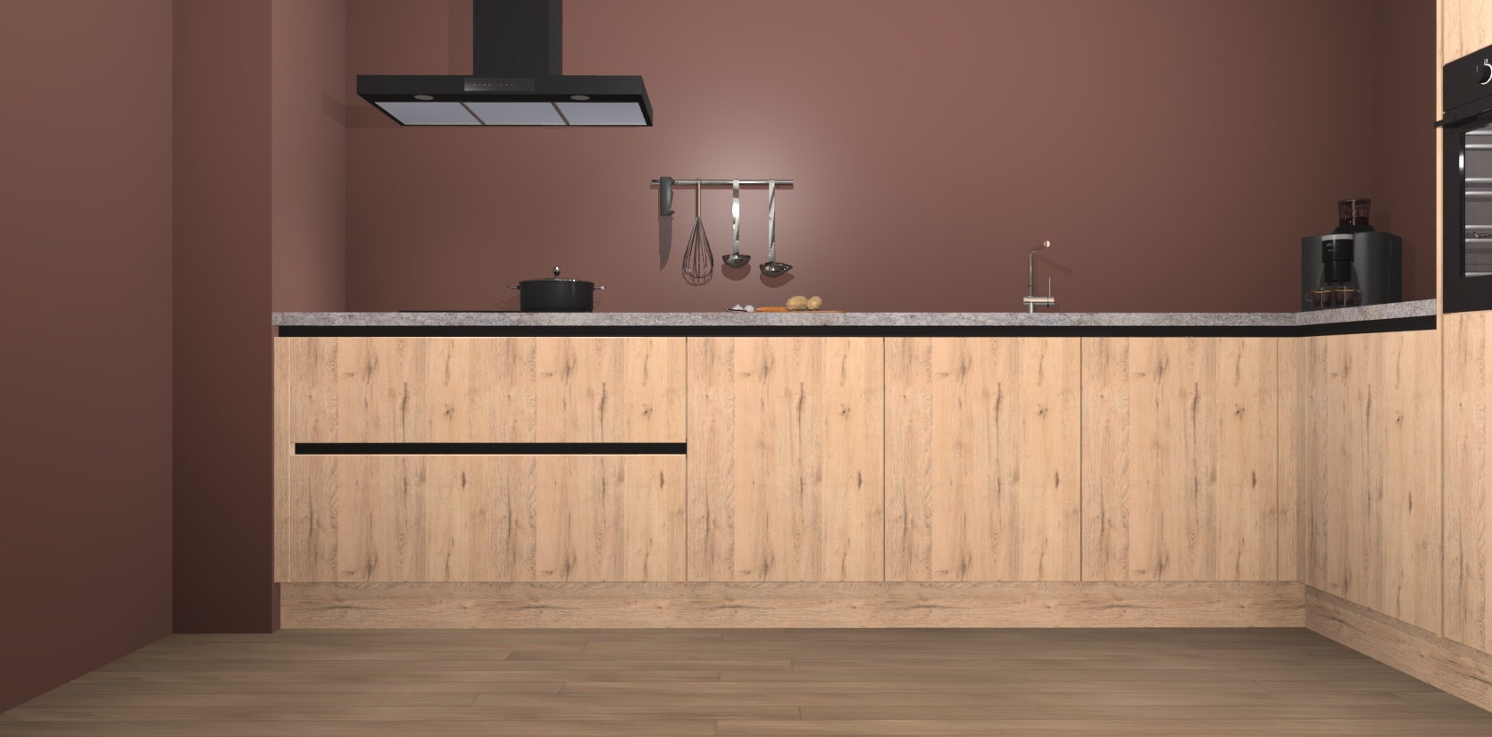 Welkom bij de Madera Natuur greeploze keuken Portland. Deze prachtige keuken zal de komende jaren het middelpunt van de belangstelling in uw huis zijn. Uitgerust met vijf inbouwapparaten komt u nooit kookgereedschap tekort. Bovendien geeft de warme houtlook elke ruimte een uitnodigende en tijdloze uitstraling.