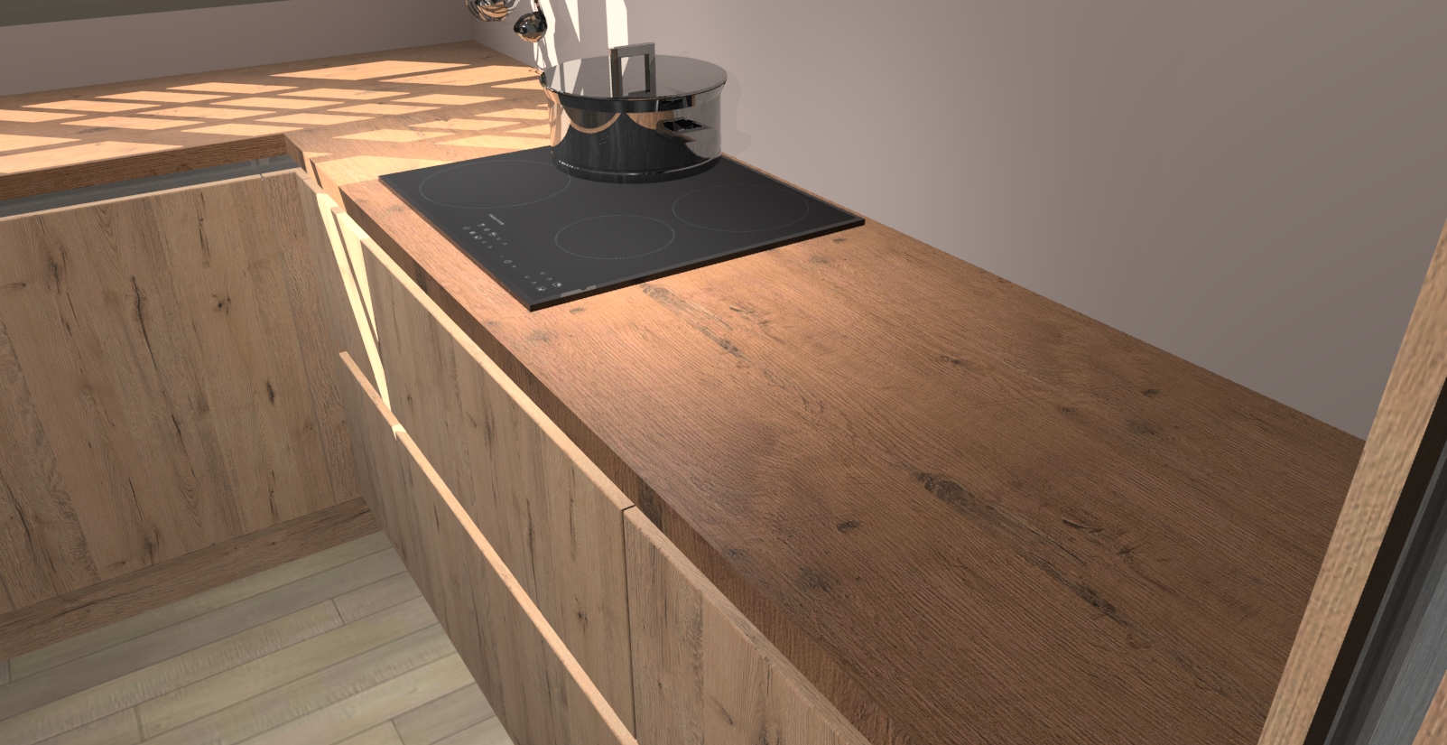 - Bij een hoekwerkblad zijn de hoeken in gevreesd en op maat gemaakt