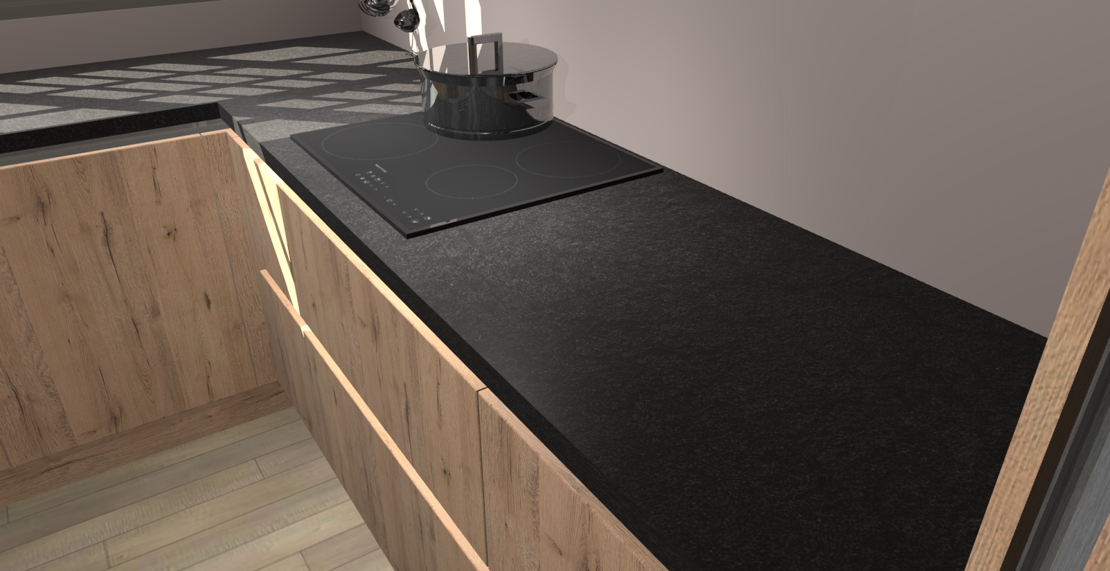 - Bij een hoekwerkblad zijn de hoeken in gevreesd en op maat gemaakt
