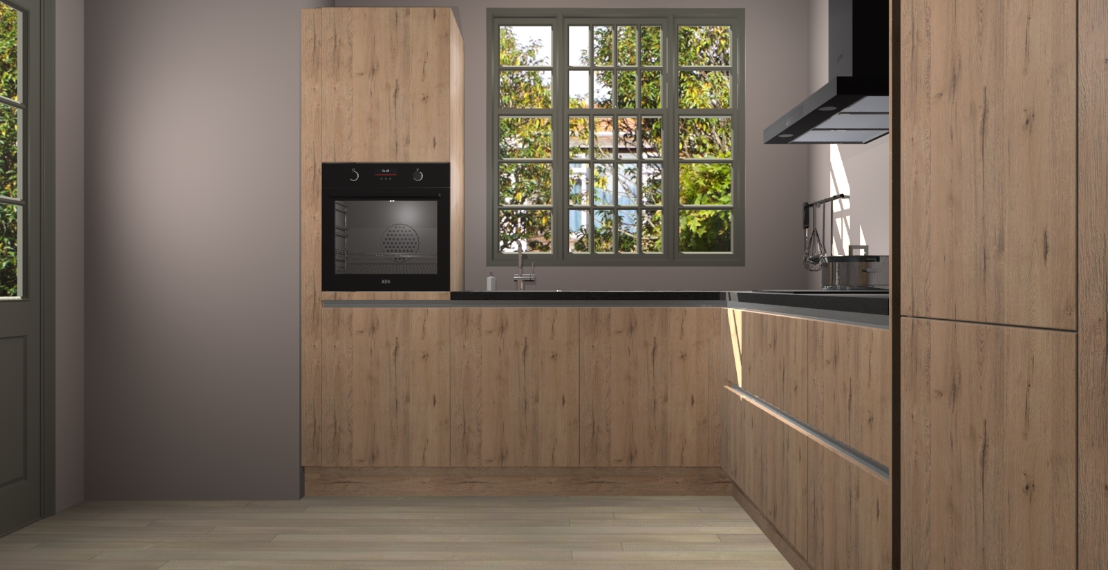 Met een modern, tijdloos design en ruime opslagruimte, zult u zich in no-time thuis voelen in uw nieuwe keuken. Uw leven wordt eenvoudiger met de soft-close deuren die voor het ultieme stille comfort zorgen - geen geluid dat u stoort terwijl u kookt. Ook is de keuken voorzien van 5 ingebouwde apparaten: een oven, inductie kookplaat, afzuigkap, vaatwasser en koelkast. Deze kunnen gemakkelijk na bestelling worden bijgewerkt naar AEG - waardoor uw luxe ervaring compleet is.