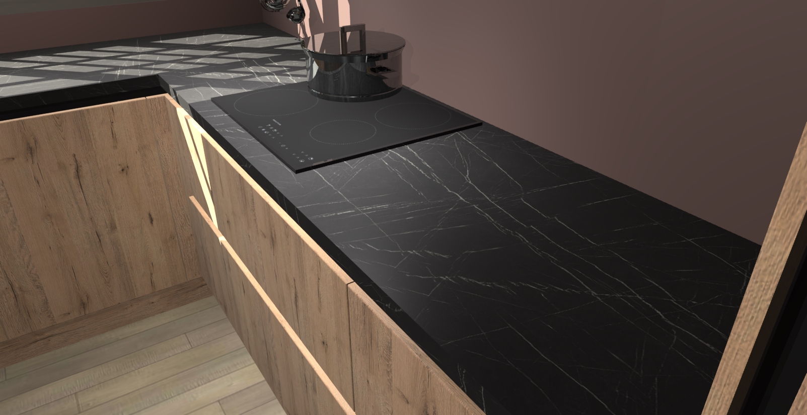 - Bij een hoekwerkblad zijn de hoeken in gevreesd en op maat gemaakt