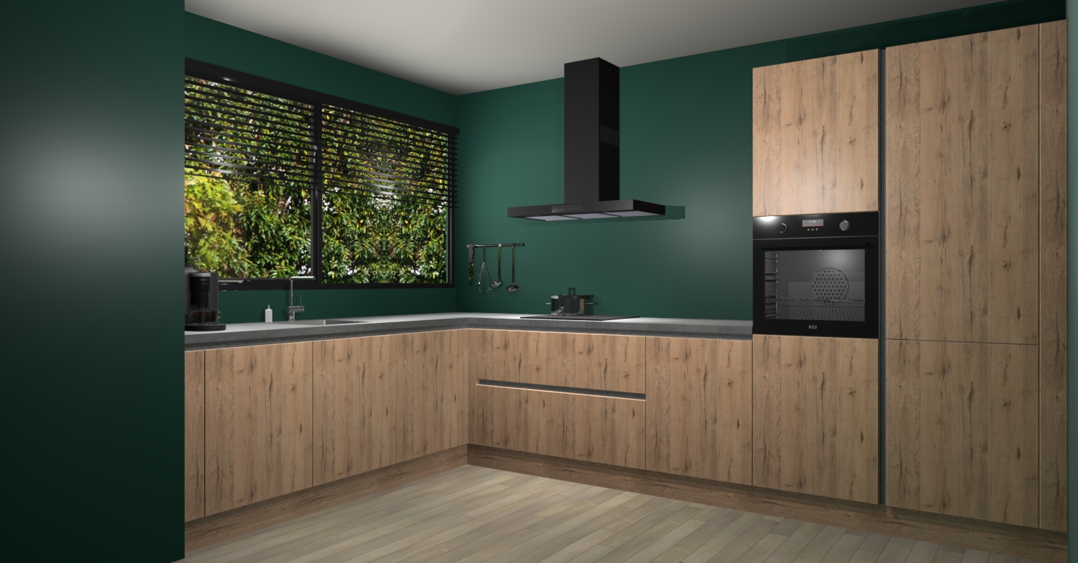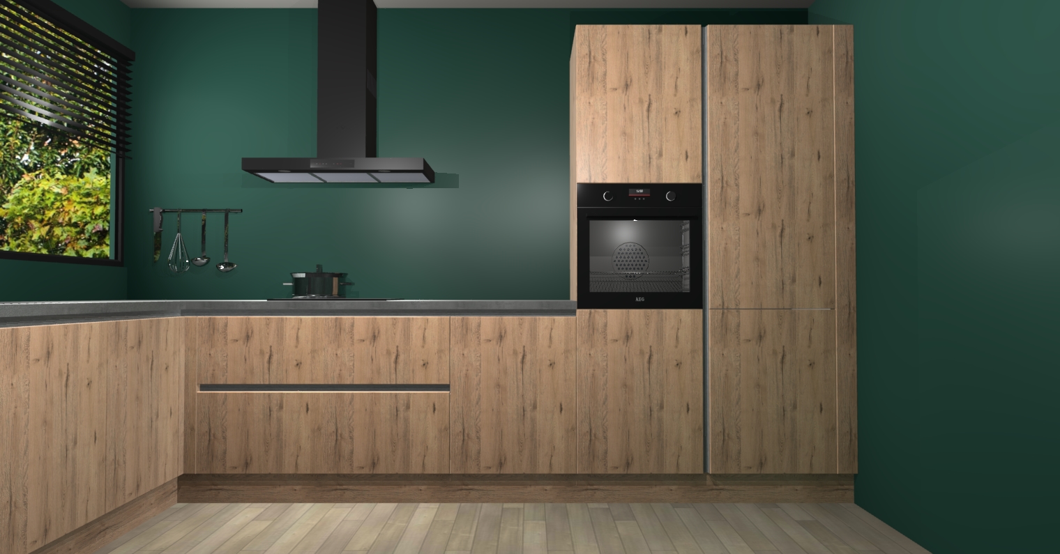 Met een modern, tijdloos design en ruime opslagruimte, zult u zich in no-time thuis voelen in uw nieuwe keuken. Uw leven wordt eenvoudiger met de soft-close deuren die voor het ultieme stille comfort zorgen - geen geluid dat u stoort terwijl u kookt. Ook is de keuken voorzien van 5 ingebouwde apparaten: een oven, inductie kookplaat, afzuigkap, vaatwasser en koelkast. Deze kunnen gemakkelijk na bestelling worden bijgewerkt naar AEG - waardoor uw luxe ervaring compleet is.