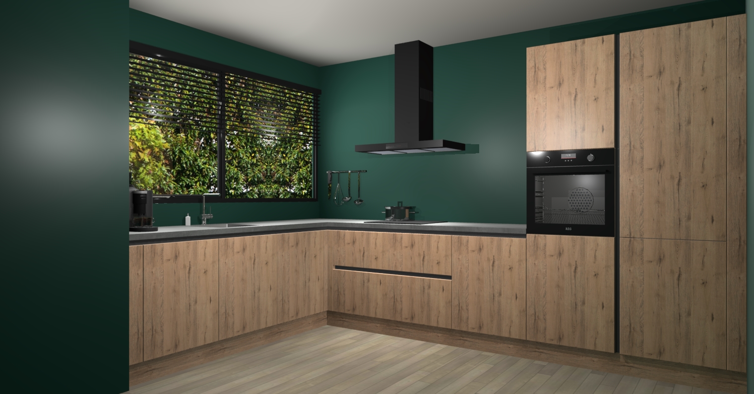 Met een modern, tijdloos design en ruime opslagruimte, zult u zich in no-time thuis voelen in uw nieuwe keuken. Uw leven wordt eenvoudiger met de soft-close deuren die voor het ultieme stille comfort zorgen - geen geluid dat u stoort terwijl u kookt. Ook is de keuken voorzien van 5 ingebouwde apparaten: een oven, inductie kookplaat, afzuigkap, vaatwasser en koelkast. Deze kunnen gemakkelijk na bestelling worden bijgewerkt naar AEG - waardoor uw luxe ervaring compleet is.