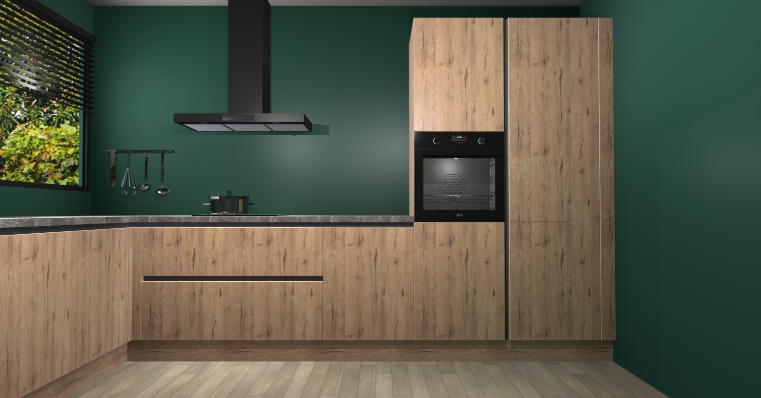 Met een modern, tijdloos design en ruime opslagruimte, zult u zich in no-time thuis voelen in uw nieuwe keuken. Uw leven wordt eenvoudiger met de soft-close deuren die voor het ultieme stille comfort zorgen - geen geluid dat u stoort terwijl u kookt. Ook is de keuken voorzien van 5 ingebouwde apparaten: een oven, inductie kookplaat, afzuigkap, vaatwasser en koelkast. Deze kunnen gemakkelijk na bestelling worden bijgewerkt naar AEG - waardoor uw luxe ervaring compleet is.