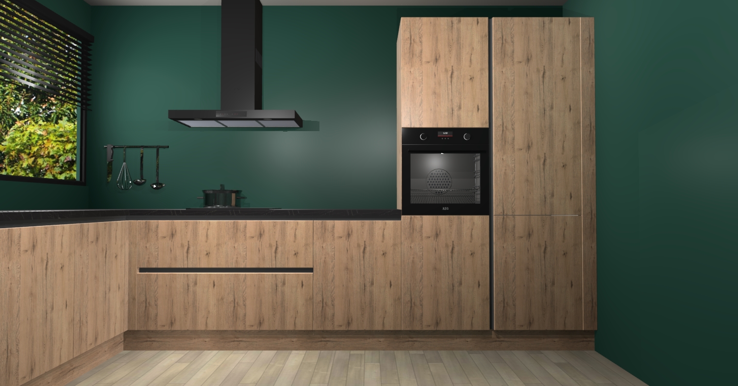Met een modern, tijdloos design en ruime opslagruimte, zult u zich in no-time thuis voelen in uw nieuwe keuken. Uw leven wordt eenvoudiger met de soft-close deuren die voor het ultieme stille comfort zorgen - geen geluid dat u stoort terwijl u kookt. Ook is de keuken voorzien van 5 ingebouwde apparaten: een oven, inductie kookplaat, afzuigkap, vaatwasser en koelkast. Deze kunnen gemakkelijk na bestelling worden bijgewerkt naar AEG - waardoor uw luxe ervaring compleet is.