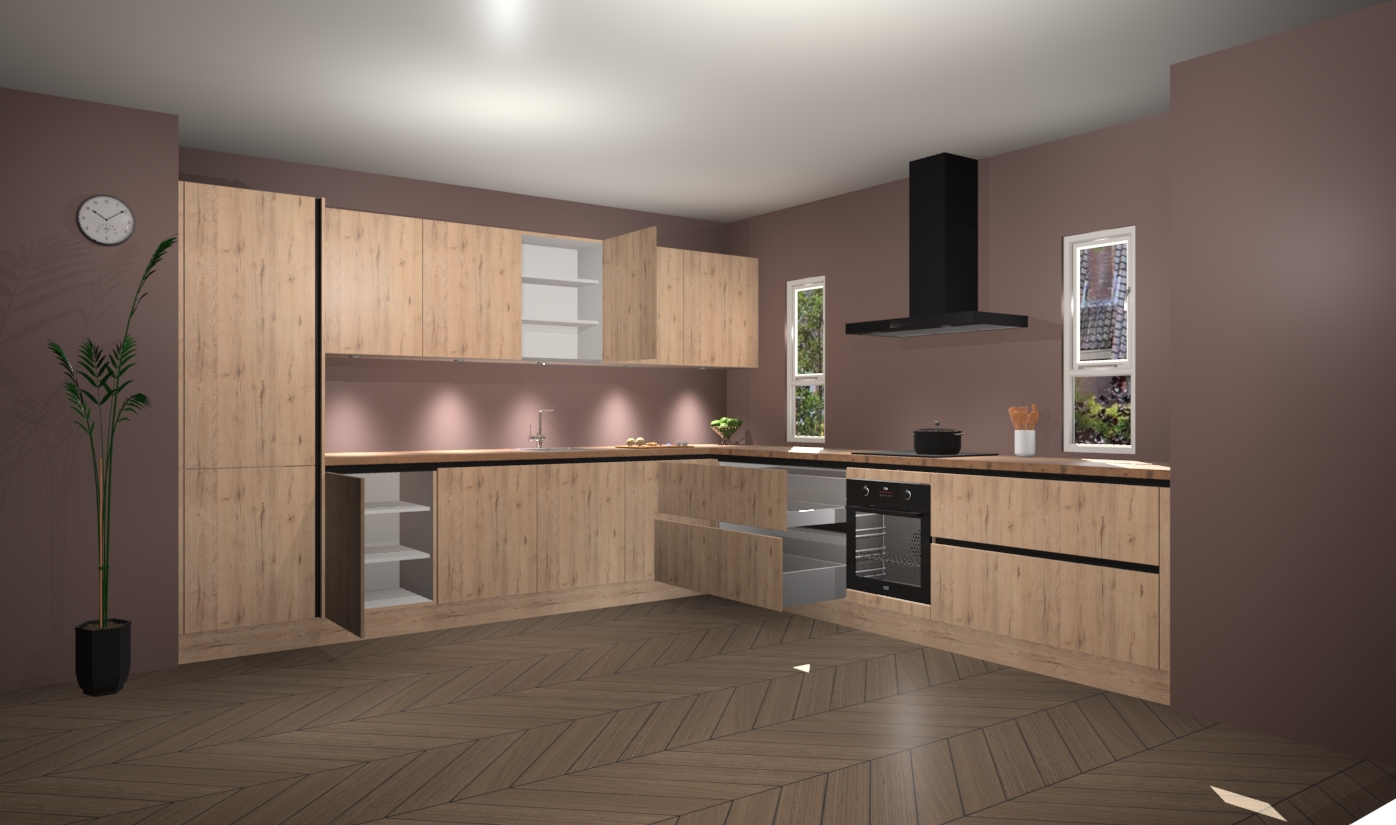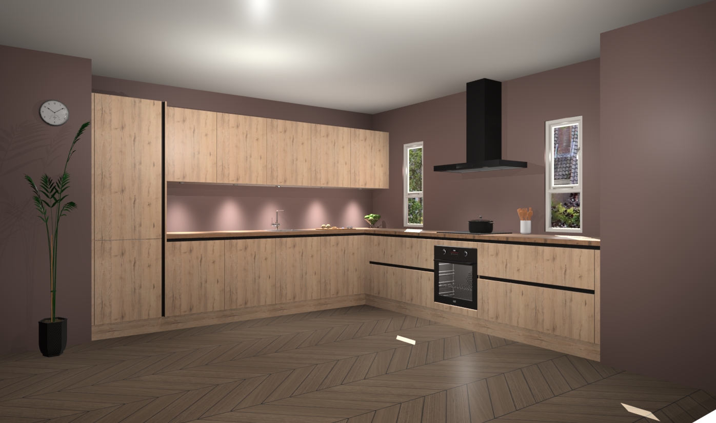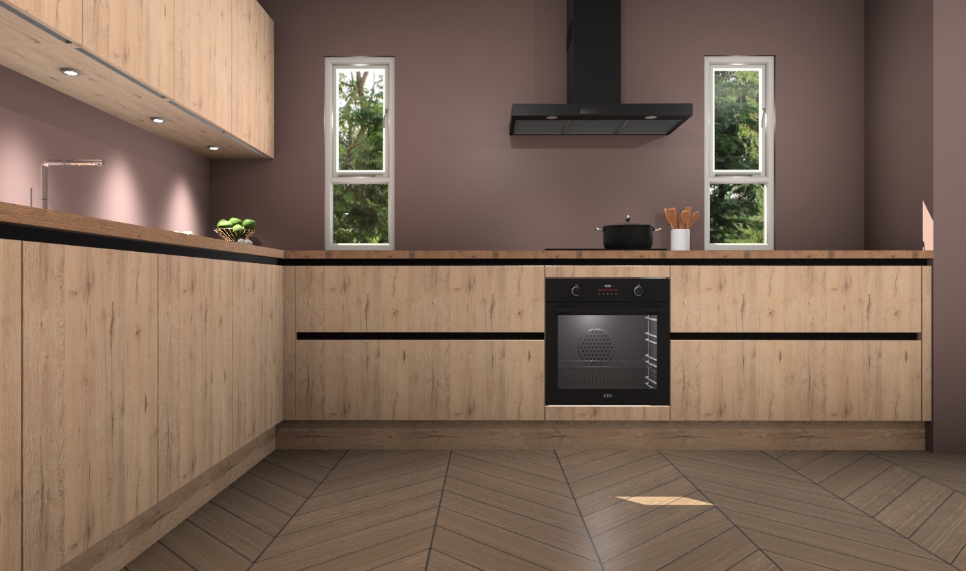 De madera natuur greeploze keuken is een ideale hoekkeuken en heeft alle functies en apparatuur die u maar nodig kunt hebben. Bij de bestelling krijgt u een oven, inductiekookplaat, afzuigkap, vaatwasser en koelkast - deze kunnen desgewenst eenvoudig worden uitgebreid naar AEG na bestellen. Elke kast wordt ook voor gemonteerd geleverd met soft close deuren die jarenlang gebruik beloven. Stelt u zich voor dat u geen gedoe heeft met vervelende montage - vanaf het moment dat u uw bestelling plaats, duurt het slechts 7 weken voor het bij u thuis geleverd wordt.