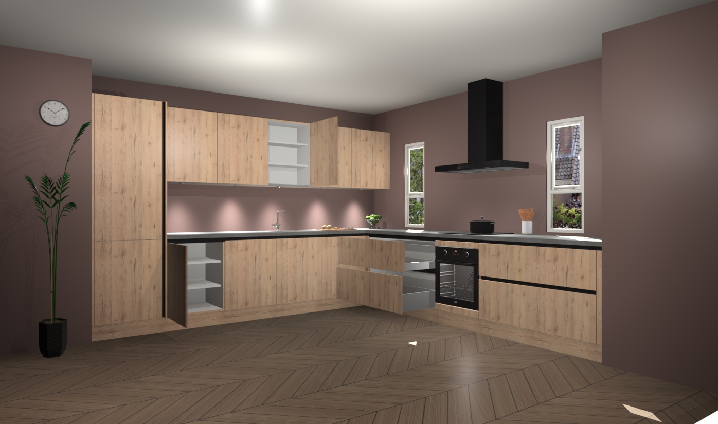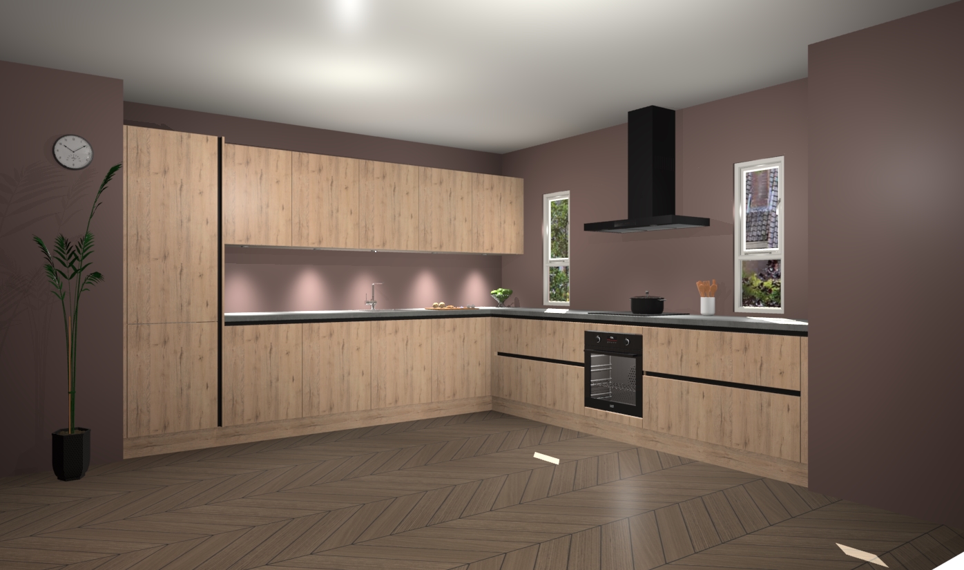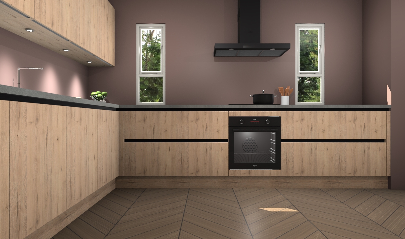 De madera natuur greeploze keuken is een ideale hoekkeuken en heeft alle functies en apparatuur die u maar nodig kunt hebben. Bij de bestelling krijgt u een oven, inductiekookplaat, afzuigkap, vaatwasser en koelkast - deze kunnen desgewenst eenvoudig worden uitgebreid naar AEG na bestellen. Elke kast wordt ook voor gemonteerd geleverd met soft close deuren die jarenlang gebruik beloven. Stelt u zich voor dat u geen gedoe heeft met vervelende montage - vanaf het moment dat u uw bestelling plaats, duurt het slechts 7 weken voor het bij u thuis geleverd wordt.