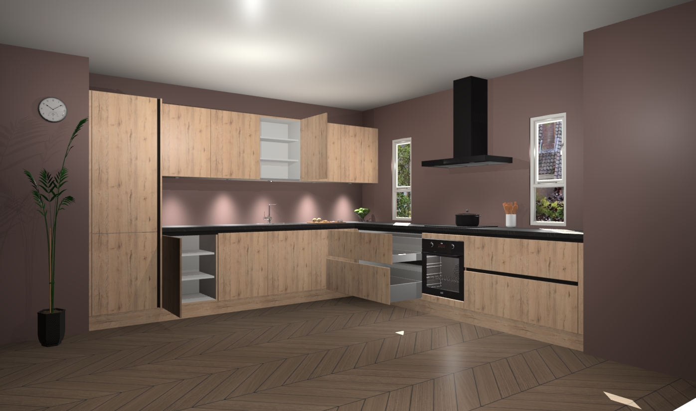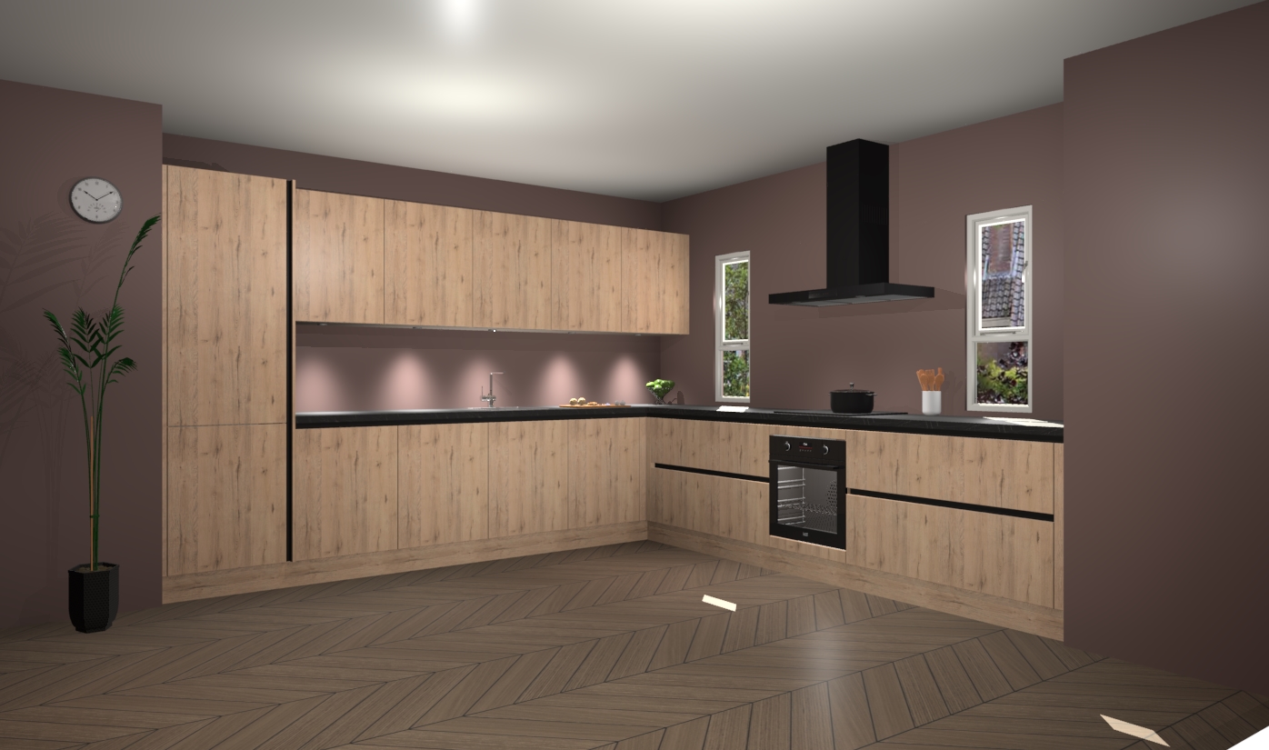De madera natuur greeploze keuken is een ideale hoekkeuken en heeft alle functies en apparatuur die u maar nodig kunt hebben. Bij de bestelling krijgt u een oven, inductiekookplaat, afzuigkap, vaatwasser en koelkast - deze kunnen desgewenst eenvoudig worden uitgebreid naar AEG na bestellen. Elke kast wordt ook voor gemonteerd geleverd met soft close deuren die jarenlang gebruik beloven. Stelt u zich voor dat u geen gedoe heeft met vervelende montage - vanaf het moment dat u uw bestelling plaats, duurt het slechts 7 weken voor het bij u thuis geleverd wordt.