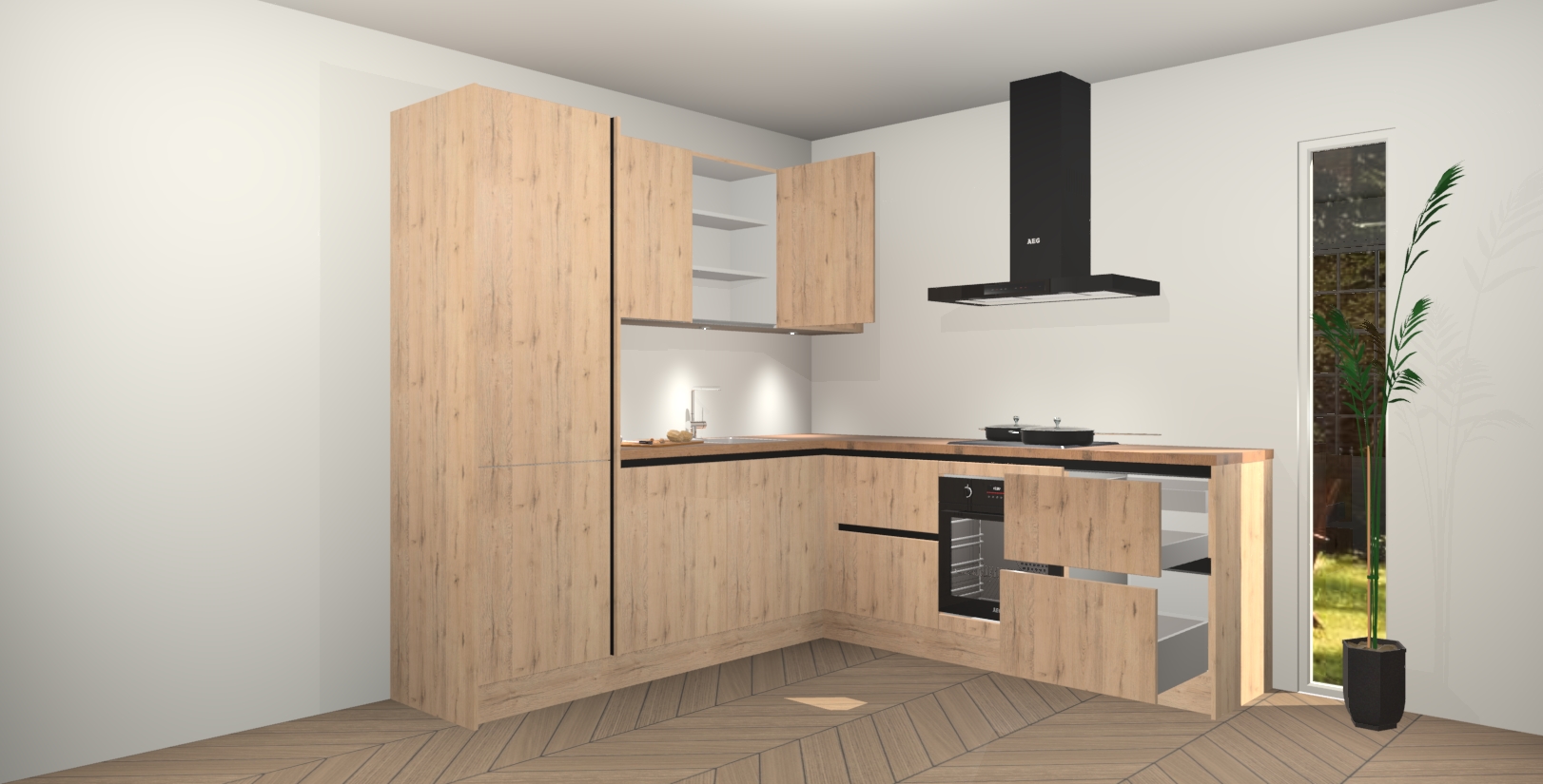 Inclusief plinten, stelpoten en werkblad