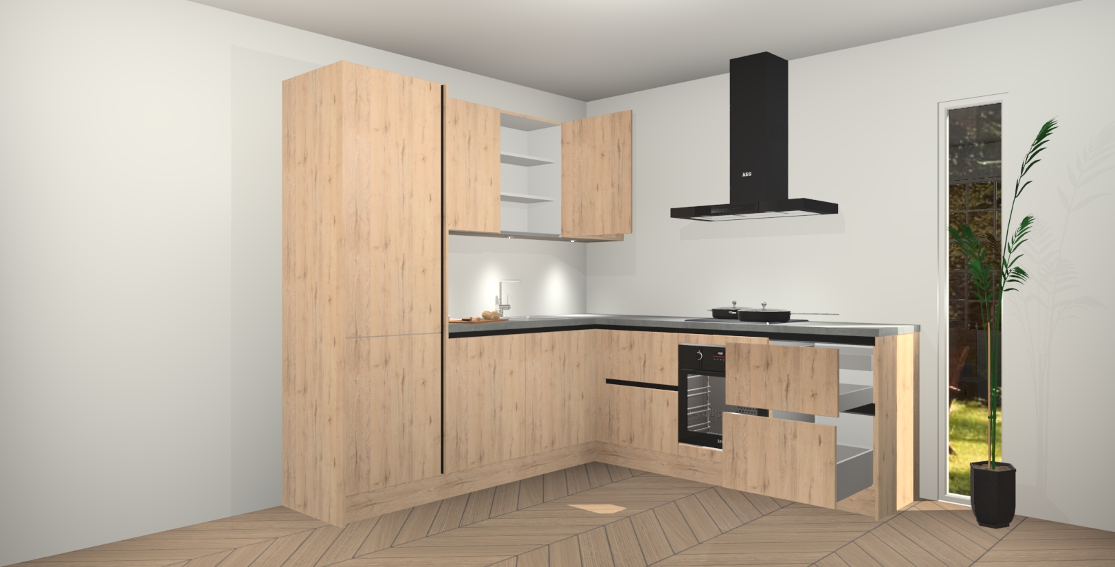 Inclusief plinten, stelpoten en werkblad