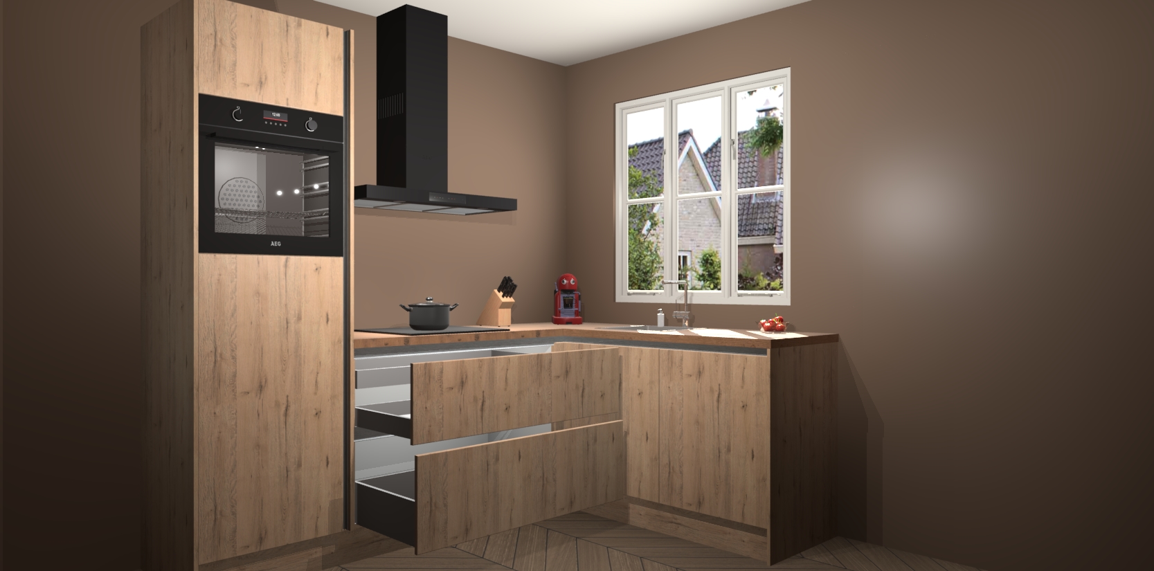 Dit model biedt u voldoende opbergruimte en vijf ingebouwde apparaten: een oven, inductiekookplaat, afzuigkap, vaatwasser en koelkast. Deze apparaten kunnen gemakkelijk worden geüpgrade naar AEG nadat u besteld heeft. De verschillende laden en kastjes bevatten softclose-deuren waardoor ze gezellig dichtvallen met een geruststellend helemaal geruisloos geluid. En dat is nog niet alles! We garanderen ook dat de prijs altijd laag blijft - dus haal nu uw Madera Natuur greeploze keuken Victoria terwijl het kan.