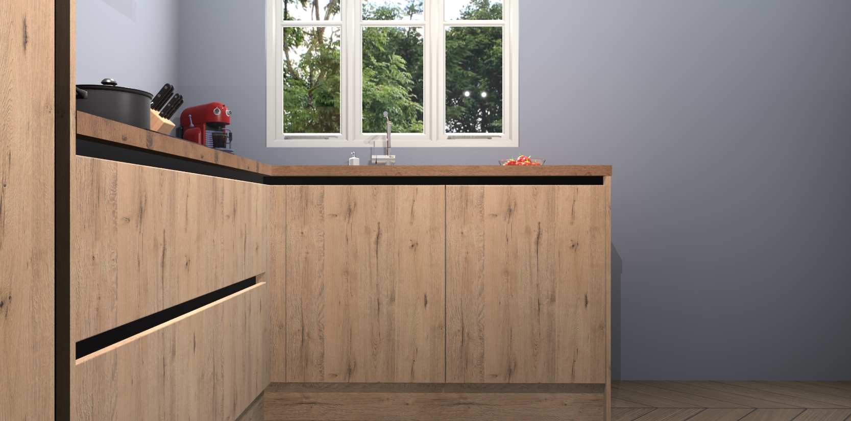 Bestellen was nog nooit zo makkelijk en we leveren met slechts 7 weken; zodra de keuken arriveert staan de kasten voor gemonteerd klaar om er alles aan te doen dat u hem gemakkelijk zelf kunt installeren! Eén ding is zeker: met de Madera Natuur greeploze keuken Victoria slaagt u erin modischer, modernere keukens uit te rusten die tientallen jaren meegaan! Haal snel uw Madera Natuur greeploze keuken Victoria - of u nu net begint of al 'levenservaring' hebt in de keukendroomloopbaan - want dit topmodel van onze collectie wilt u absoluut niet missen.