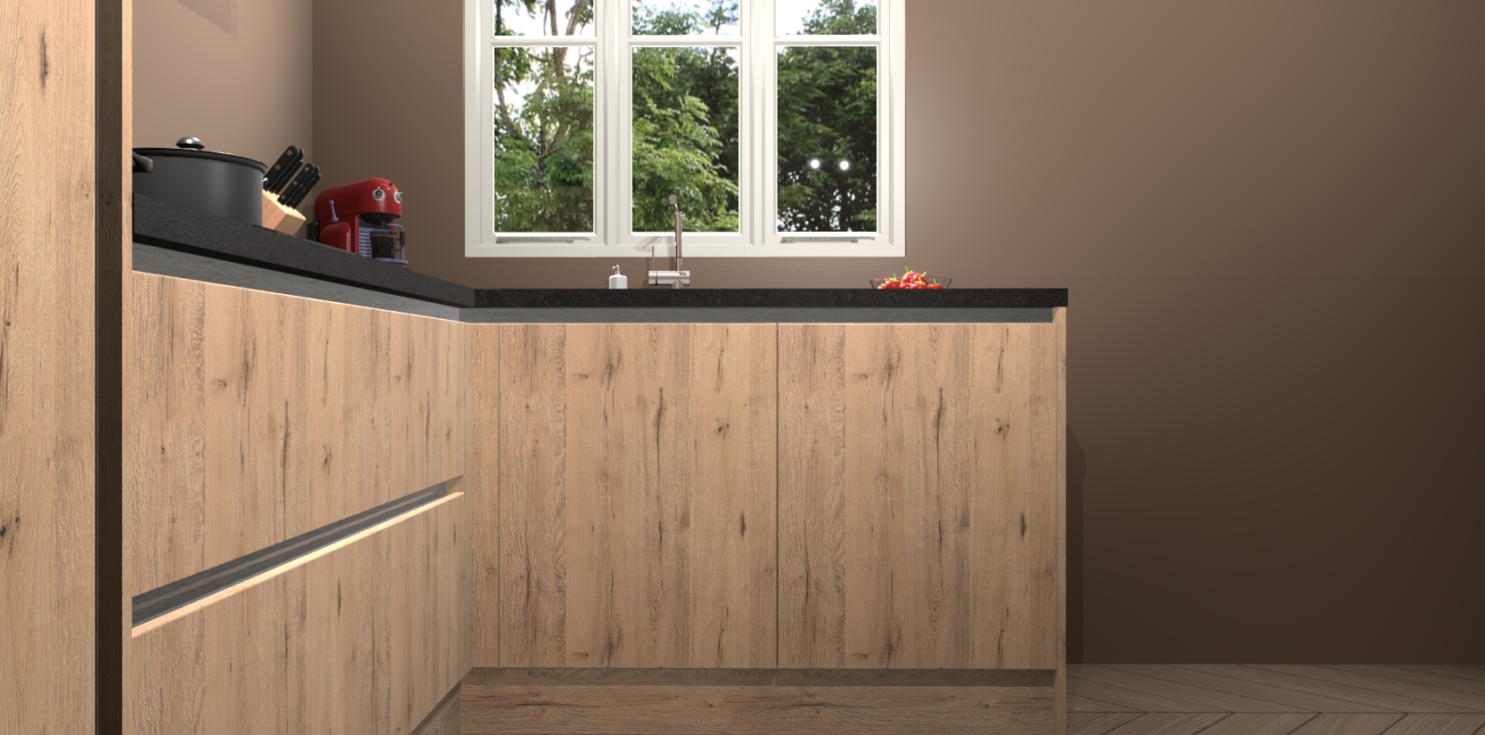 Bestellen was nog nooit zo makkelijk en we leveren met slechts 7 weken; zodra de keuken arriveert staan de kasten voor gemonteerd klaar om er alles aan te doen dat u hem gemakkelijk zelf kunt installeren! Eén ding is zeker: met de Madera Natuur greeploze keuken Victoria slaagt u erin modischer, modernere keukens uit te rusten die tientallen jaren meegaan! Haal snel uw Madera Natuur greeploze keuken Victoria - of u nu net begint of al 'levenservaring' hebt in de keukendroomloopbaan - want dit topmodel van onze collectie wilt u absoluut niet missen.