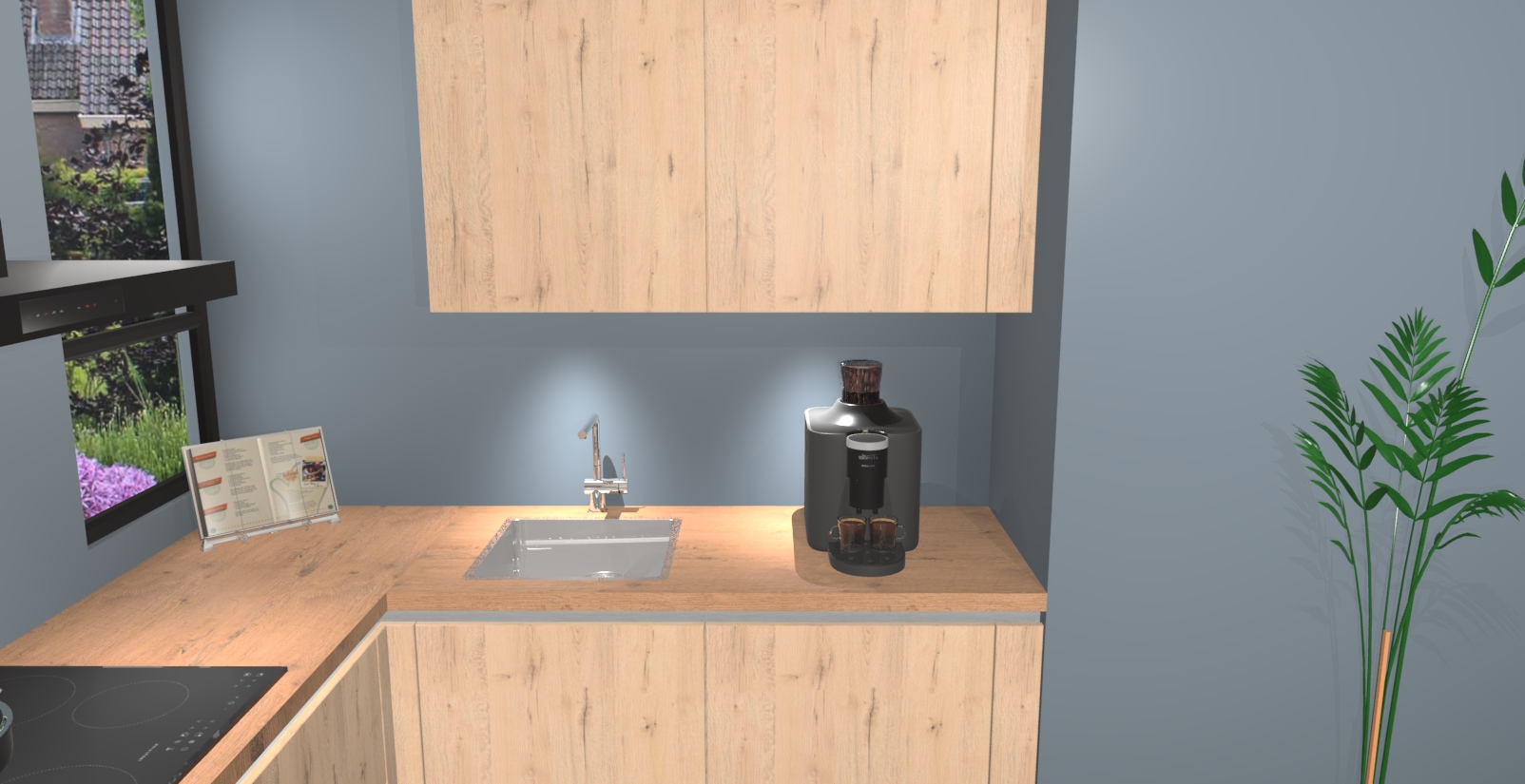 - De spoelbak is nog niet in gevreesd. Dit dient tijdens het werk gedaan te worden