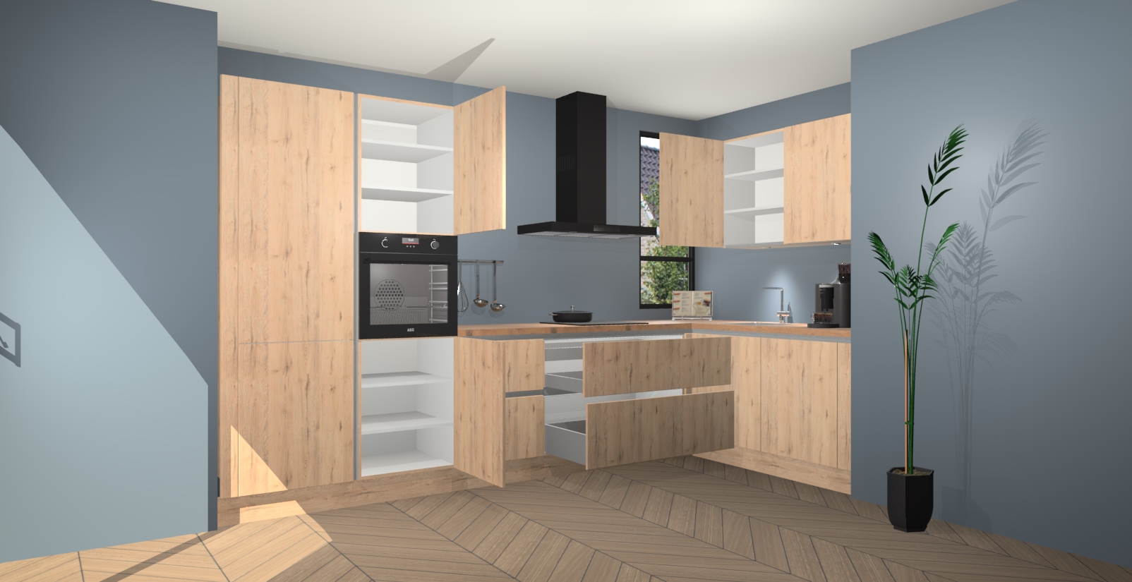Welkom in uw nieuwe moderne keuken! Laat ons u voorstellen aan de Madera Natuur greeploze keuken Vlaanderen . Deze prachtige hoekkeuken straalt exclusiviteit en luxe uit als geen ander. Het strakke design, de tijdloze kleuren en het greeploze model maken van deze keuken een moderne klassieker. En met voldoende opbergruimte heeft deze keuken echt voor ieder wat wils.