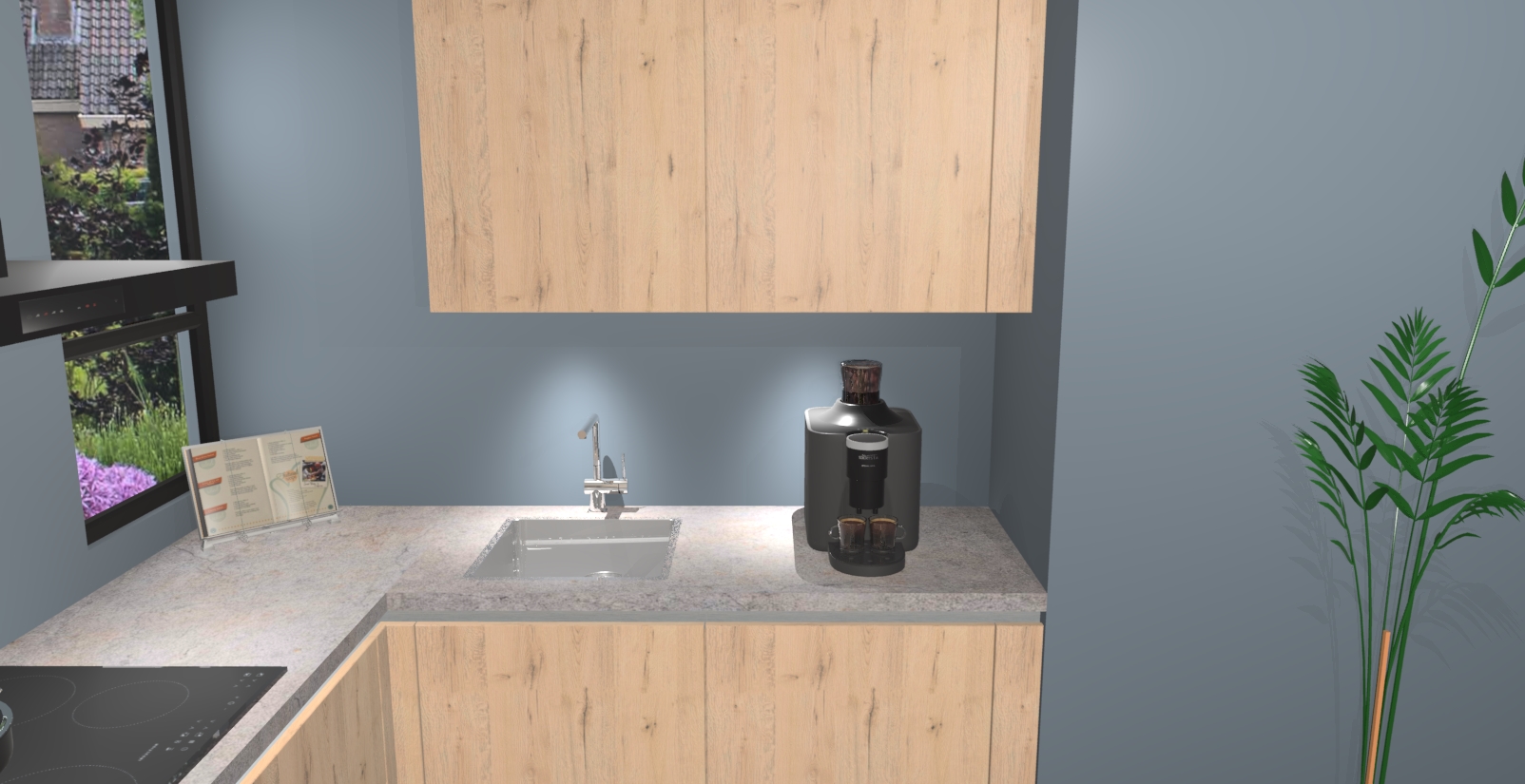 - De spoelbak is nog niet in gevreesd. Dit dient tijdens het werk gedaan te worden