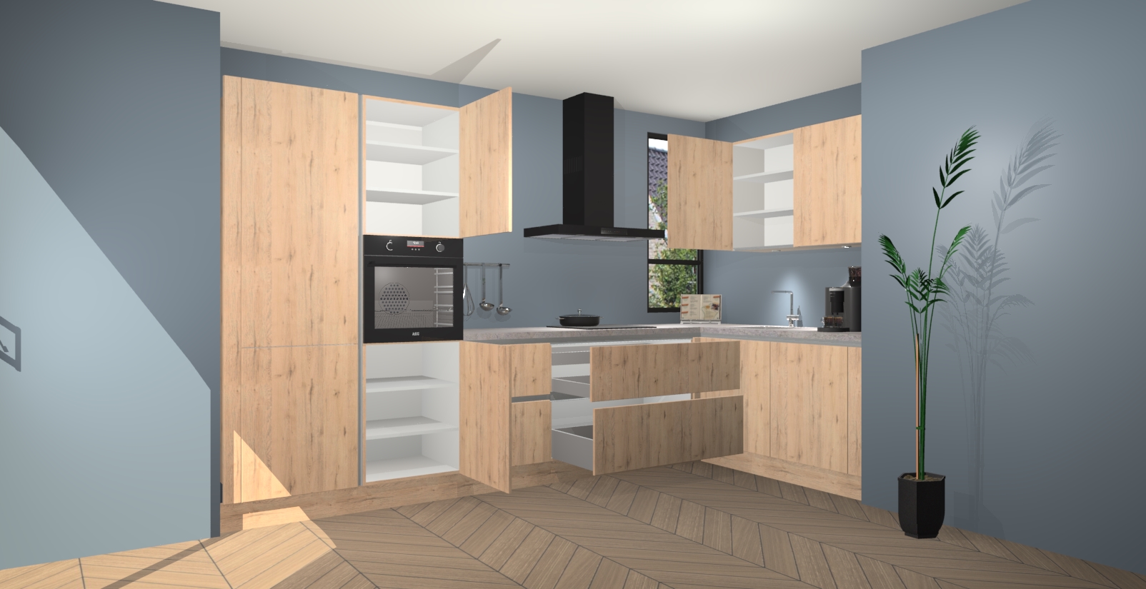 Welkom in uw nieuwe moderne keuken! Laat ons u voorstellen aan de Madera Natuur greeploze keuken Vlaanderen . Deze prachtige hoekkeuken straalt exclusiviteit en luxe uit als geen ander. Het strakke design, de tijdloze kleuren en het greeploze model maken van deze keuken een moderne klassieker. En met voldoende opbergruimte heeft deze keuken echt voor ieder wat wils.