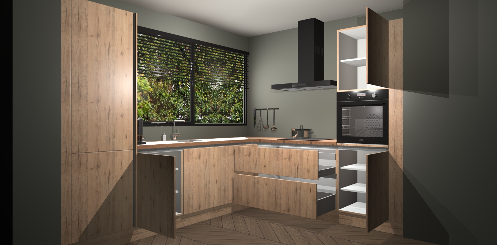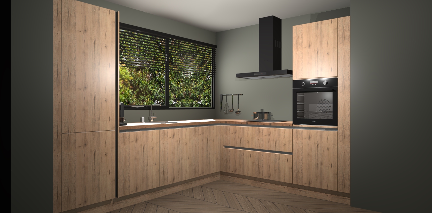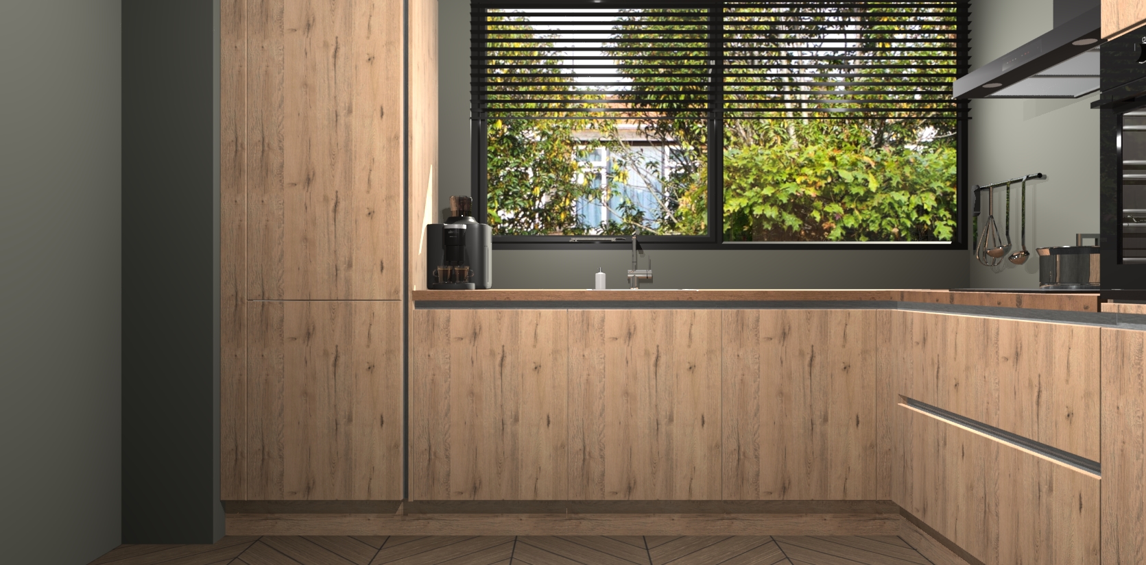 Wij presenteren de revolutie in keukens: de madera natuur greeploze keuken Vogar. Met modern design, een tijdloos uiterlijk en kasten die al voor gemonteerd worden geleverd, laat deze stijlvolle keuken uw kookervaring op een hele nieuwe manier transformeren.