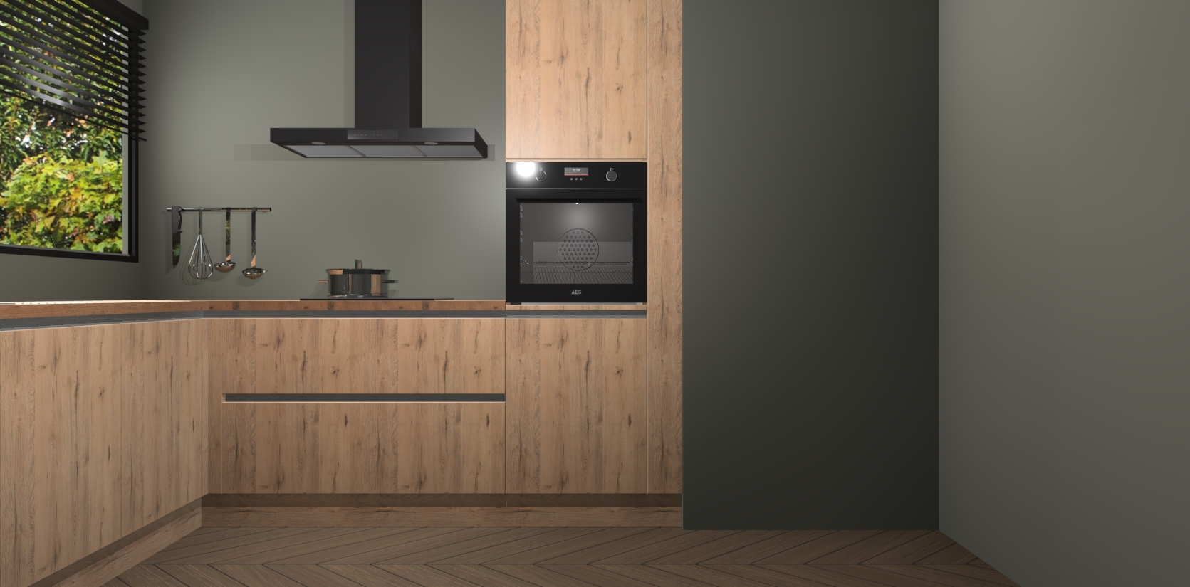 Met een modern, tijdloos design en ruime opslagruimte, zult u zich in no-time thuis voelen in uw nieuwe keuken. Uw leven wordt eenvoudiger met de soft-close deuren die voor het ultieme stille comfort zorgen - geen geluid dat u stoort terwijl u kookt. Ook is de keuken voorzien van 5 ingebouwde apparaten: een oven, inductie kookplaat, afzuigkap, vaatwasser en koelkast. Deze kunnen gemakkelijk na bestelling worden bijgewerkt naar AEG - waardoor uw luxe ervaring compleet is.