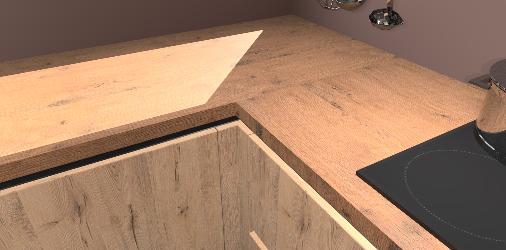 • Bij een hoekwerkblad zijn de hoeken in gevreesd en op maat gemaakt