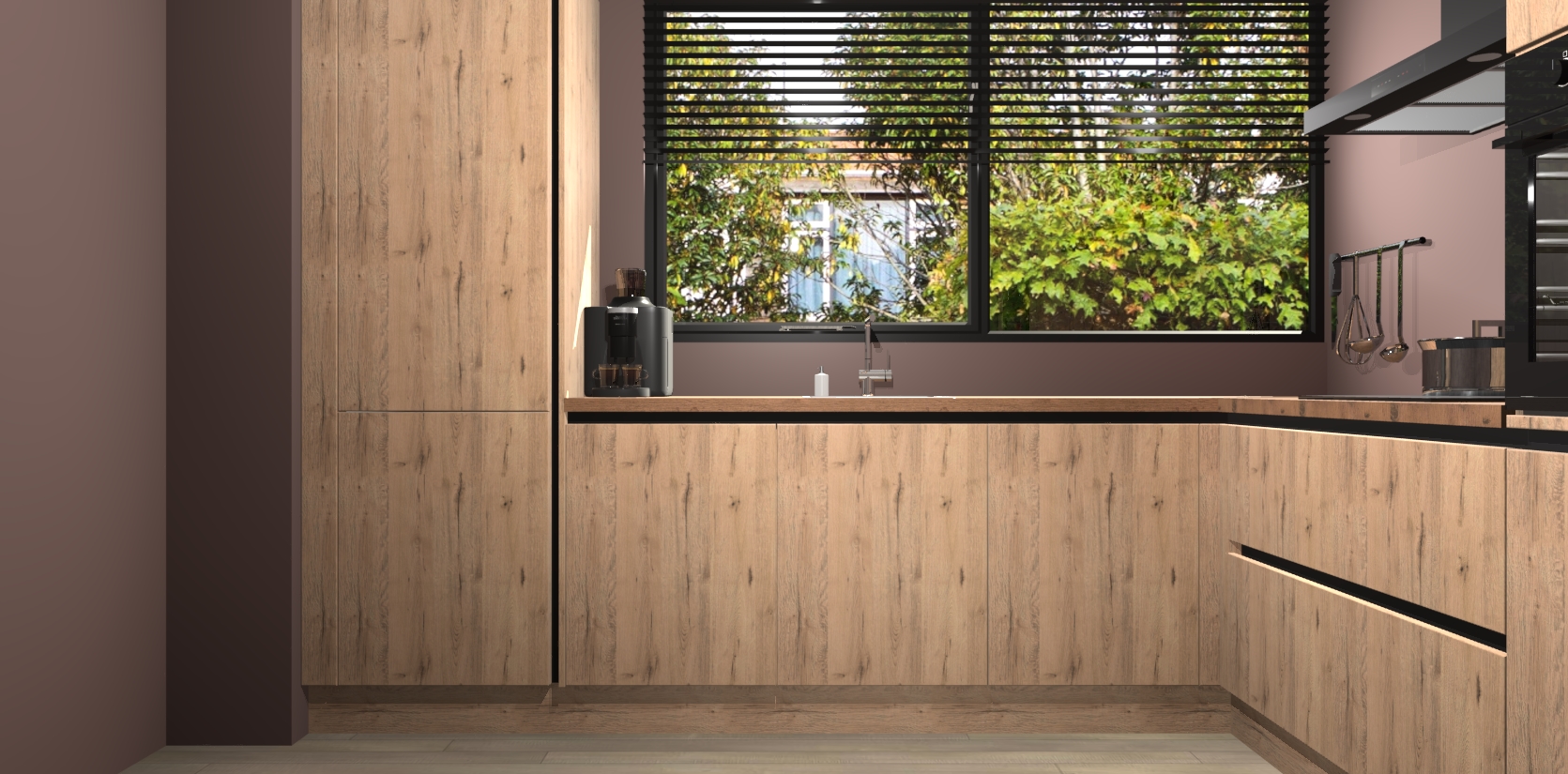 Wij presenteren de revolutie in keukens: de madera natuur greeploze keuken Vogar. Met modern design, een tijdloos uiterlijk en kasten die al voor gemonteerd worden geleverd, laat deze stijlvolle keuken uw kookervaring op een hele nieuwe manier transformeren.
