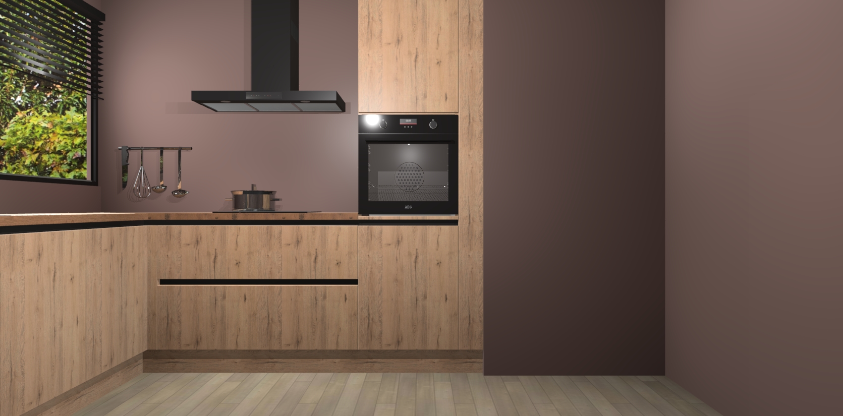Met een modern, tijdloos design en ruime opslagruimte, zult u zich in no-time thuis voelen in uw nieuwe keuken. Uw leven wordt eenvoudiger met de soft-close deuren die voor het ultieme stille comfort zorgen - geen geluid dat u stoort terwijl u kookt. Ook is de keuken voorzien van 5 ingebouwde apparaten: een oven, inductie kookplaat, afzuigkap, vaatwasser en koelkast. Deze kunnen gemakkelijk na bestelling worden bijgewerkt naar AEG - waardoor uw luxe ervaring compleet is.