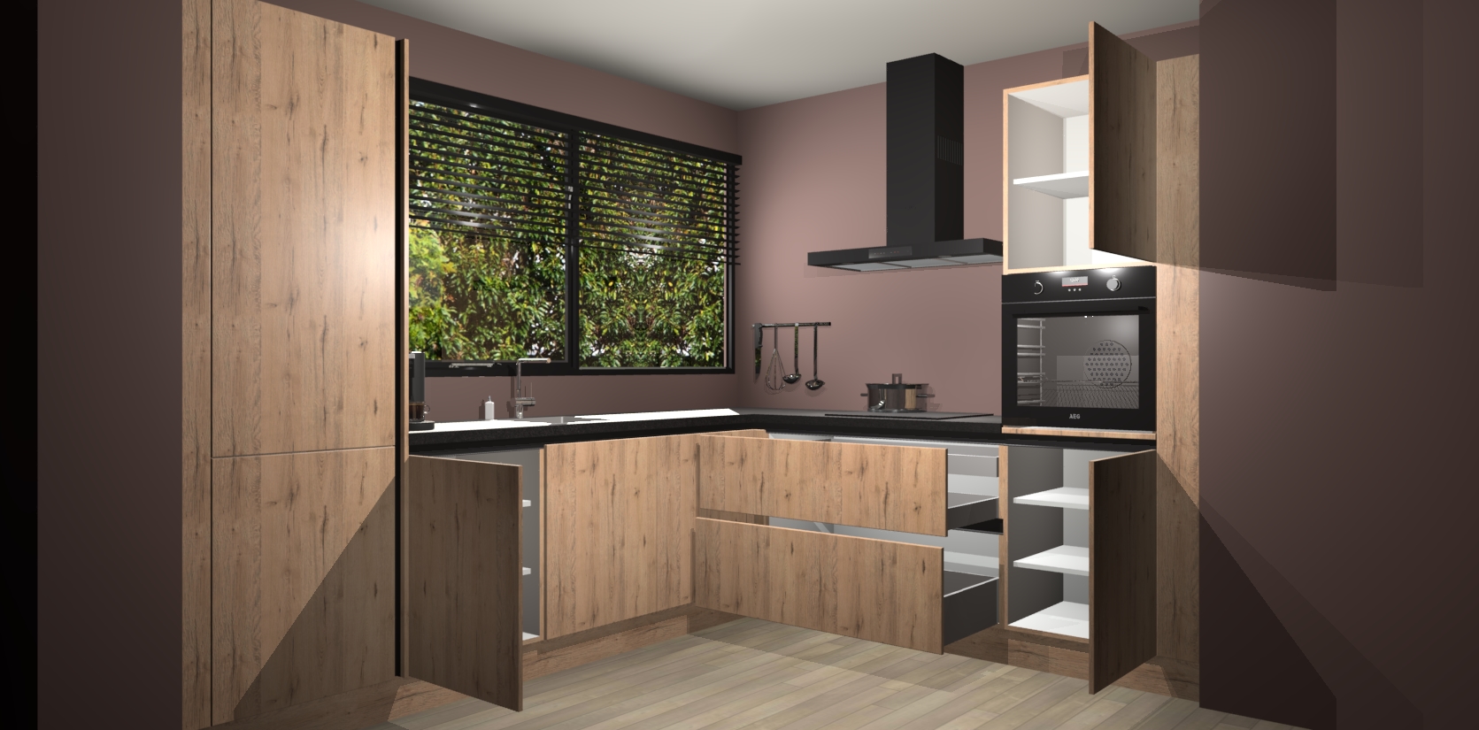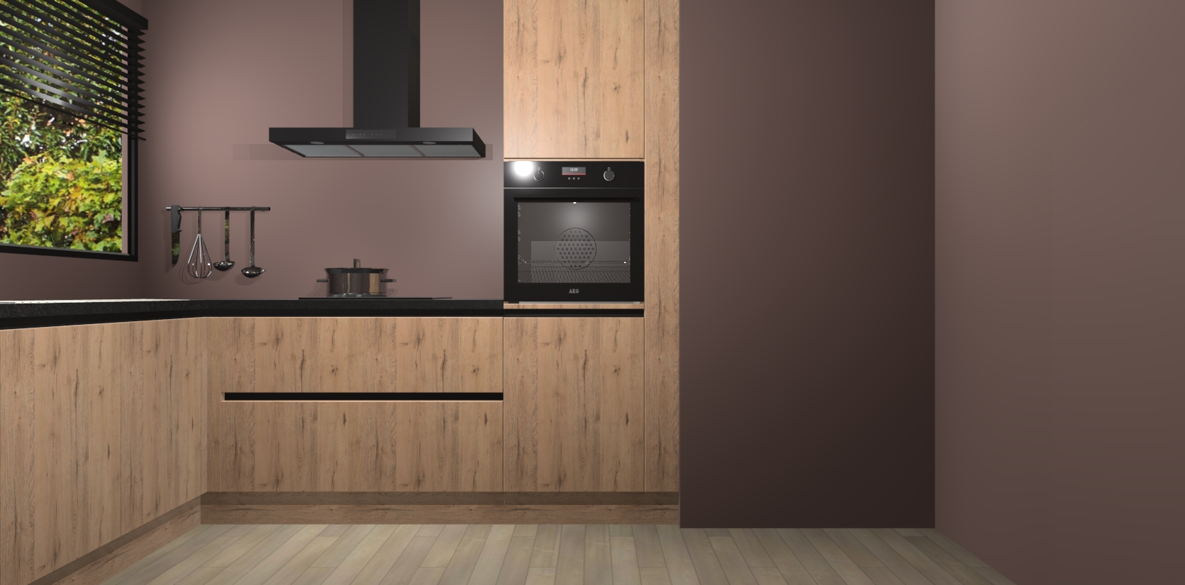 Met een modern, tijdloos design en ruime opslagruimte, zult u zich in no-time thuis voelen in uw nieuwe keuken. Uw leven wordt eenvoudiger met de soft-close deuren die voor het ultieme stille comfort zorgen - geen geluid dat u stoort terwijl u kookt. Ook is de keuken voorzien van 5 ingebouwde apparaten: een oven, inductie kookplaat, afzuigkap, vaatwasser en koelkast. Deze kunnen gemakkelijk na bestelling worden bijgewerkt naar AEG - waardoor uw luxe ervaring compleet is.