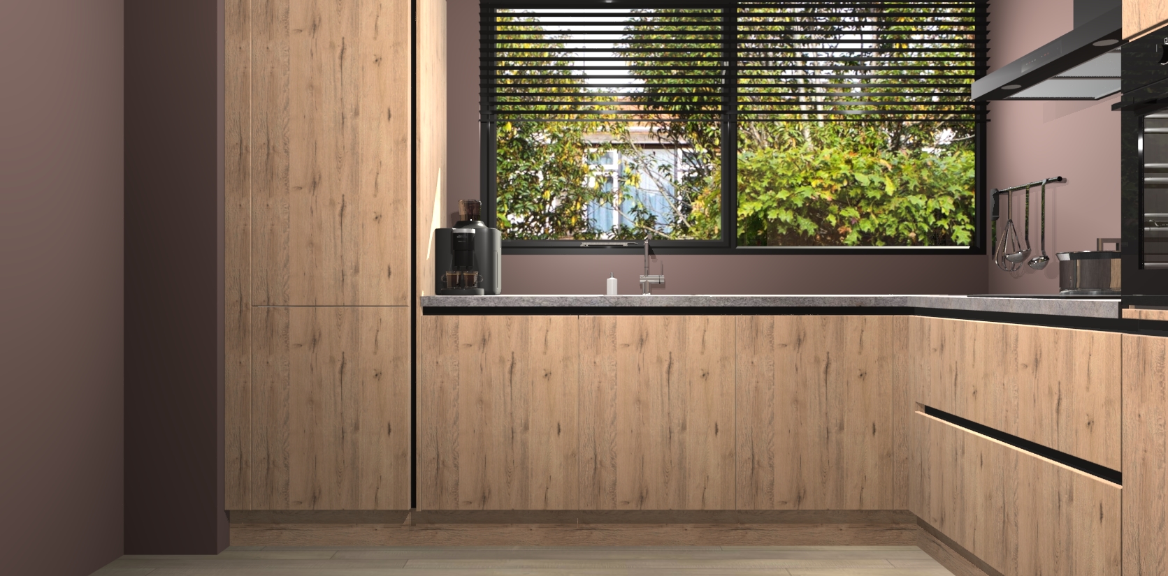 Wij presenteren de revolutie in keukens: de madera natuur greeploze keuken Vogar. Met modern design, een tijdloos uiterlijk en kasten die al voor gemonteerd worden geleverd, laat deze stijlvolle keuken uw kookervaring op een hele nieuwe manier transformeren.