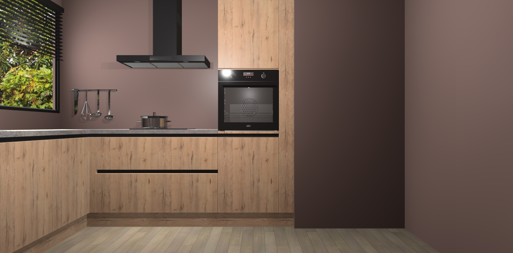 Met een modern, tijdloos design en ruime opslagruimte, zult u zich in no-time thuis voelen in uw nieuwe keuken. Uw leven wordt eenvoudiger met de soft-close deuren die voor het ultieme stille comfort zorgen - geen geluid dat u stoort terwijl u kookt. Ook is de keuken voorzien van 5 ingebouwde apparaten: een oven, inductie kookplaat, afzuigkap, vaatwasser en koelkast. Deze kunnen gemakkelijk na bestelling worden bijgewerkt naar AEG - waardoor uw luxe ervaring compleet is.