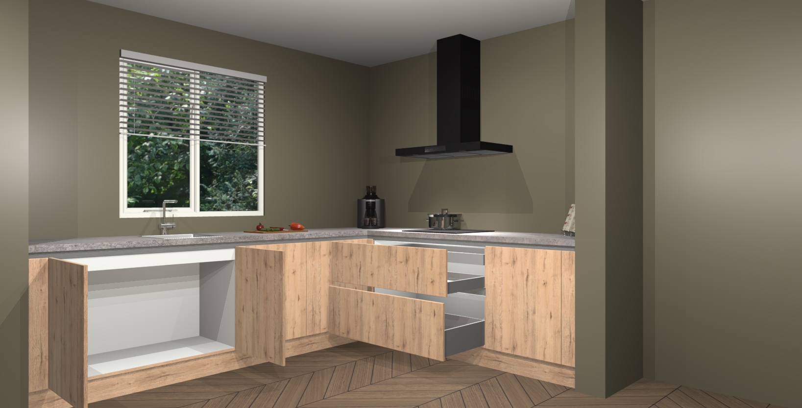 - Bij een hoekwerkblad zijn de hoeken in gevreesd en op maat gemaakt