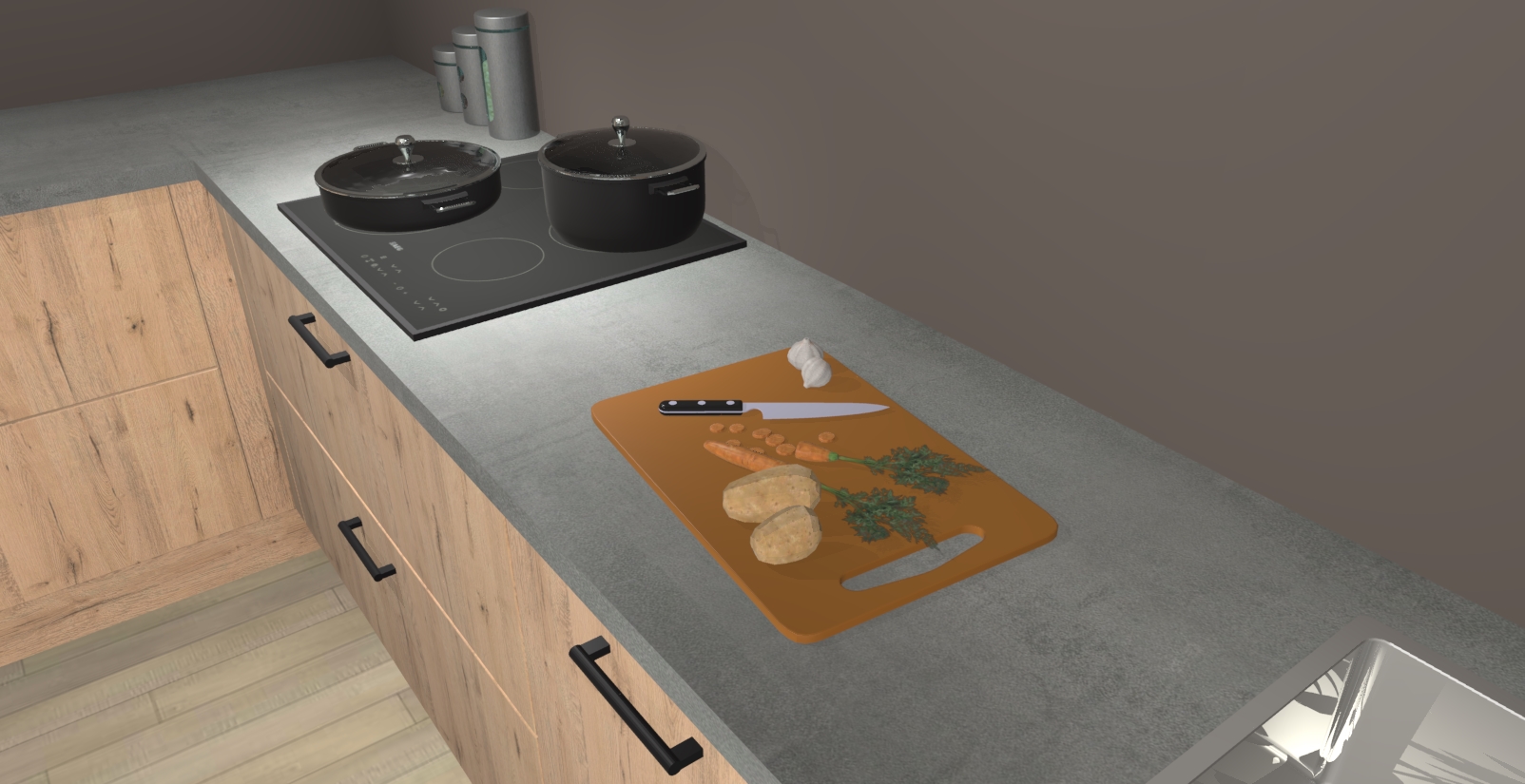 Inclusief plinten, stelpoten en werkblad