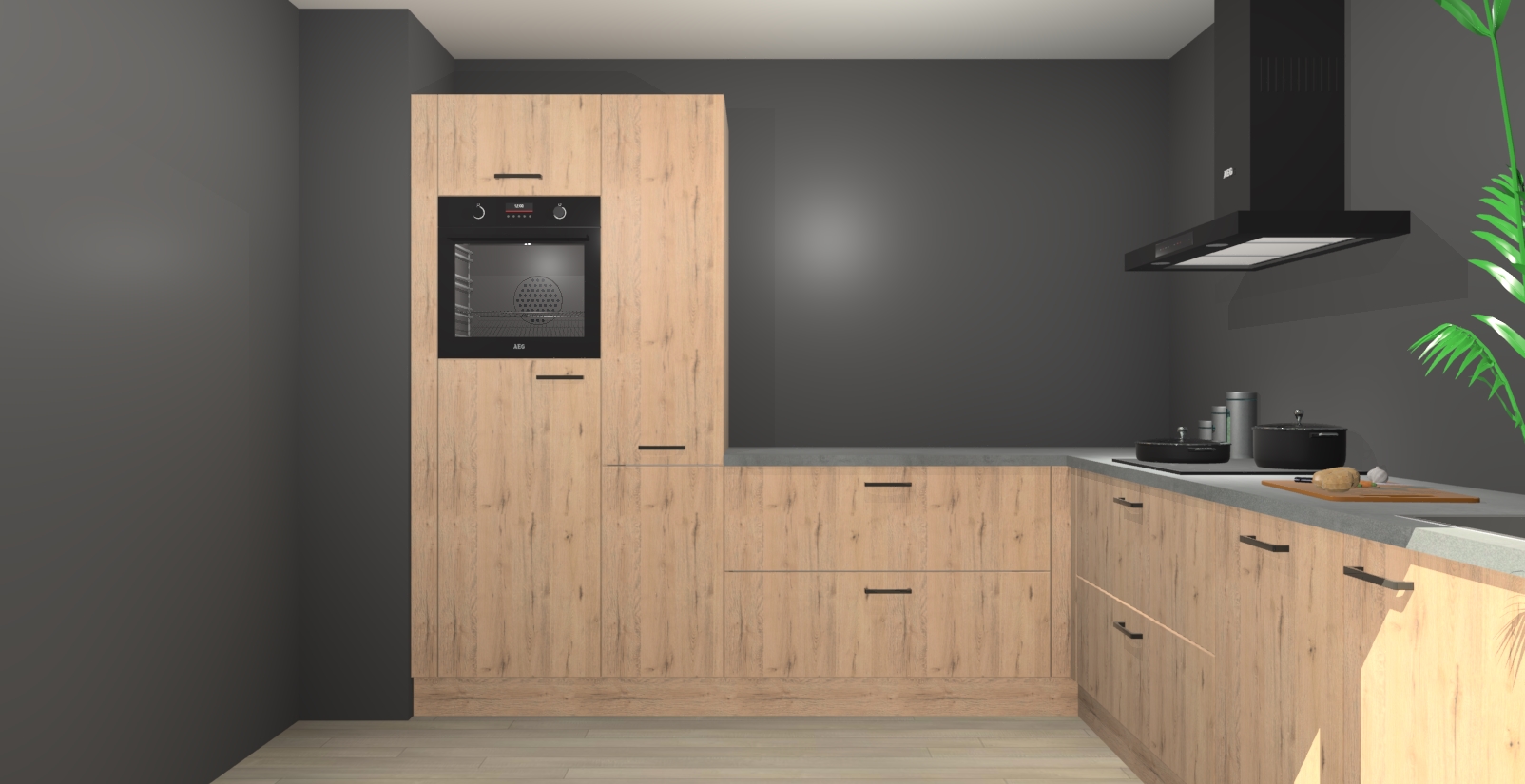 Laat u verrassen door de nieuwste en meest innovatieve keuken van dit moment: De Madera Natuur keuken Antibes. Deze chique keuken straalt een stijlvolle sfeer uit die zeker bewondering zal oogsten bij uw gasten. Als u op zoek bent naar voldoende opbergruimte voor al uw keukengadgets en -gerei, dan is dit de perfecte oplossing. Met ingebouwde apparatuur zoals een oven, inductiekookplaat, afzuigkap, vaatwasser en koelkast! U krijgt niet alleen veel opbergruimte, maar ook een betrouwbaar soft close-deursysteem dat ervoor zorgt dat er nooit meer kastdeuren dichtslaan!