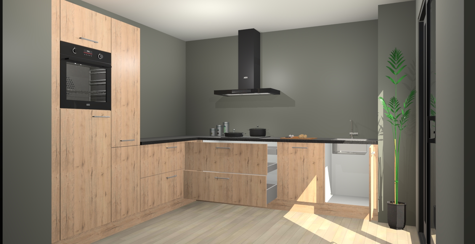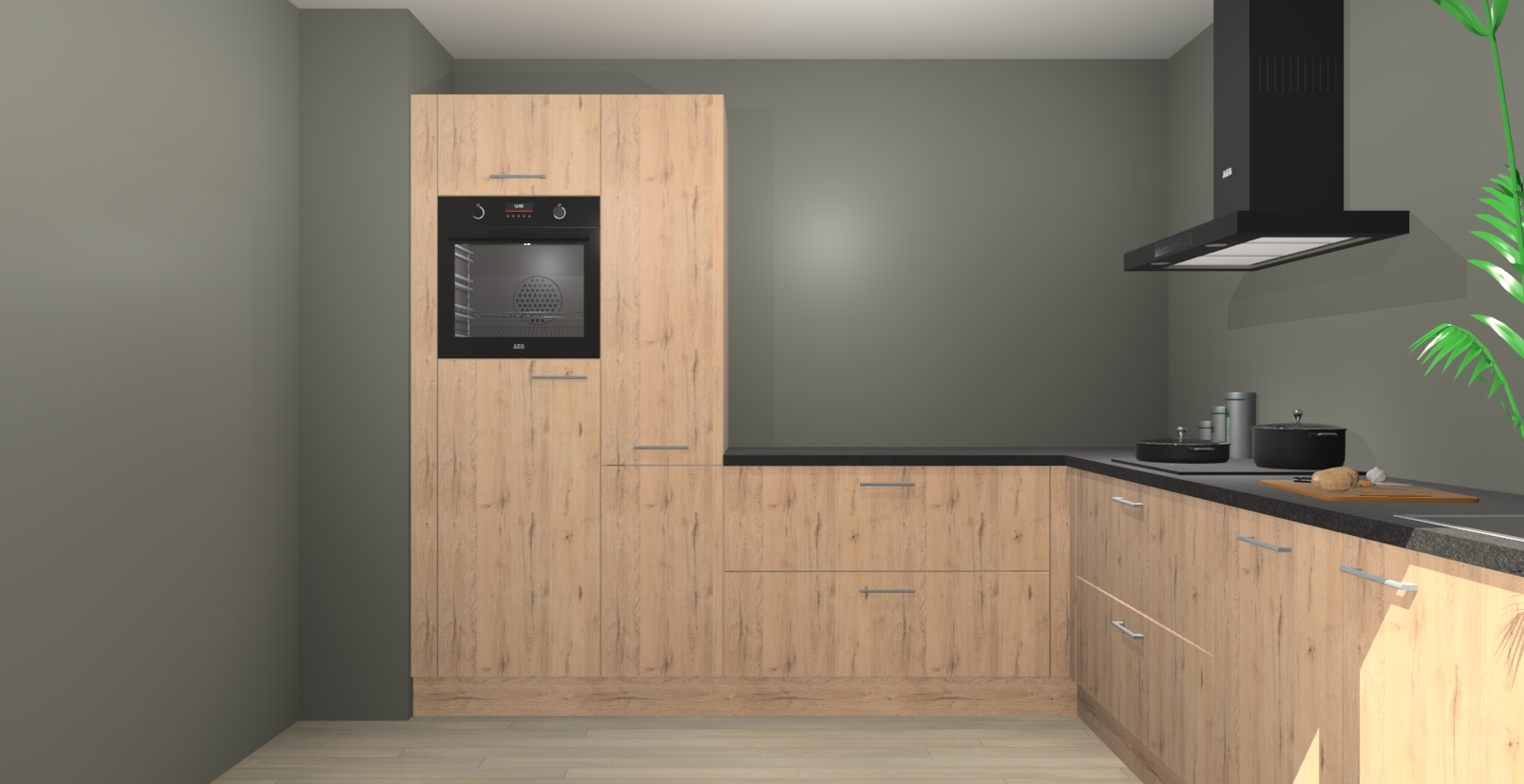 Laat u verrassen door de nieuwste en meest innovatieve keuken van dit moment: De Madera Natuur keuken Antibes. Deze chique keuken straalt een stijlvolle sfeer uit die zeker bewondering zal oogsten bij uw gasten. Als u op zoek bent naar voldoende opbergruimte voor al uw keukengadgets en -gerei, dan is dit de perfecte oplossing. Met ingebouwde apparatuur zoals een oven, inductiekookplaat, afzuigkap, vaatwasser en koelkast! U krijgt niet alleen veel opbergruimte, maar ook een betrouwbaar soft close-deursysteem dat ervoor zorgt dat er nooit meer kastdeuren dichtslaan!