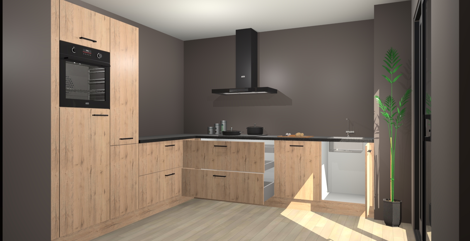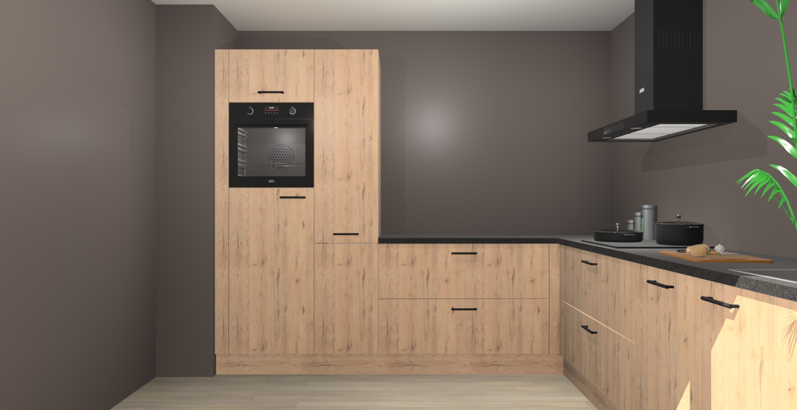 Laat u verrassen door de nieuwste en meest innovatieve keuken van dit moment: De Madera Natuur keuken Antibes. Deze chique keuken straalt een stijlvolle sfeer uit die zeker bewondering zal oogsten bij uw gasten. Als u op zoek bent naar voldoende opbergruimte voor al uw keukengadgets en -gerei, dan is dit de perfecte oplossing. Met ingebouwde apparatuur zoals een oven, inductiekookplaat, afzuigkap, vaatwasser en koelkast! U krijgt niet alleen veel opbergruimte, maar ook een betrouwbaar soft close-deursysteem dat ervoor zorgt dat er nooit meer kastdeuren dichtslaan!