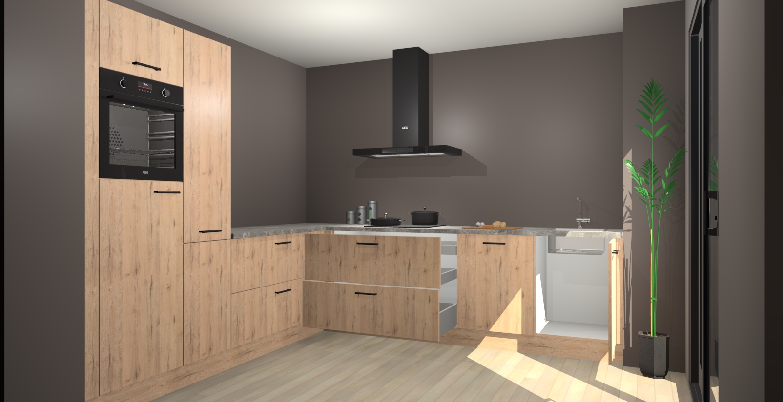 Laat u verrassen door de nieuwste en meest innovatieve keuken van dit moment: De Madera Natuur keuken Antibes. Deze chique keuken straalt een stijlvolle sfeer uit die zeker bewondering zal oogsten bij uw gasten. Als u op zoek bent naar voldoende opbergruimte voor al uw keukengadgets en -gerei, dan is dit de perfecte oplossing. Met ingebouwde apparatuur zoals een oven, inductiekookplaat, afzuigkap, vaatwasser en koelkast! U krijgt niet alleen veel opbergruimte, maar ook een betrouwbaar soft close-deursysteem dat ervoor zorgt dat er nooit meer kastdeuren dichtslaan!