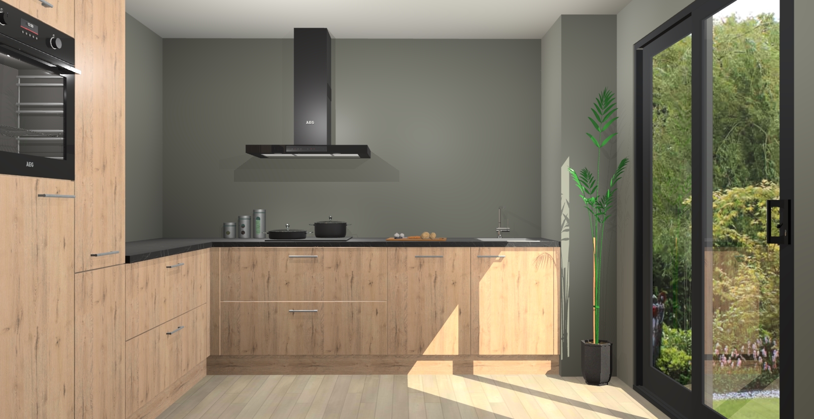 Laat u verrassen door de nieuwste en meest innovatieve keuken van dit moment: De Madera Natuur keuken Antibes. Deze chique keuken straalt een stijlvolle sfeer uit die zeker bewondering zal oogsten bij uw gasten. Als u op zoek bent naar voldoende opbergruimte voor al uw keukengadgets en -gerei, dan is dit de perfecte oplossing. Met ingebouwde apparatuur zoals een oven, inductiekookplaat, afzuigkap, vaatwasser en koelkast! U krijgt niet alleen veel opbergruimte, maar ook een betrouwbaar soft close-deursysteem dat ervoor zorgt dat er nooit meer kastdeuren dichtslaan!