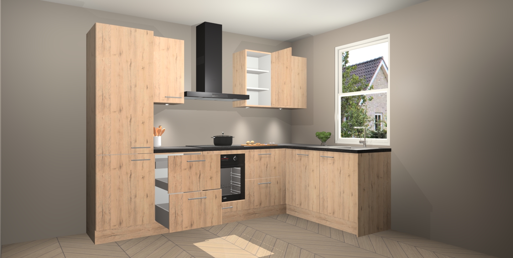 Maak kennis met de trendsettende en luxe Madera Natuur keuken Bazel! Deze uitzonderlijke keuken van Duitse kwaliteit is stijlvol, modern en perfect om elk huis mee op te fleuren. De binnenkant van de kasten worden meegenomen in een bijpassende kleur om een samenhangende eigentijdse esthetiek te voltooien. U zult dol zijn op hoe uw pas gerenoveerde keuken eruitziet met de Madera Natuur editie!