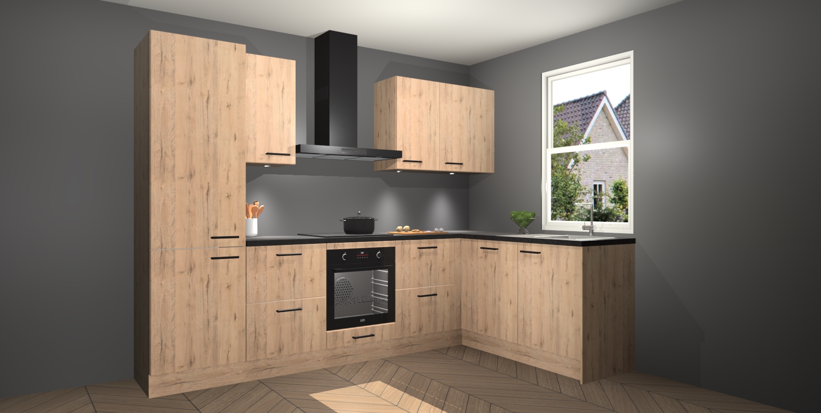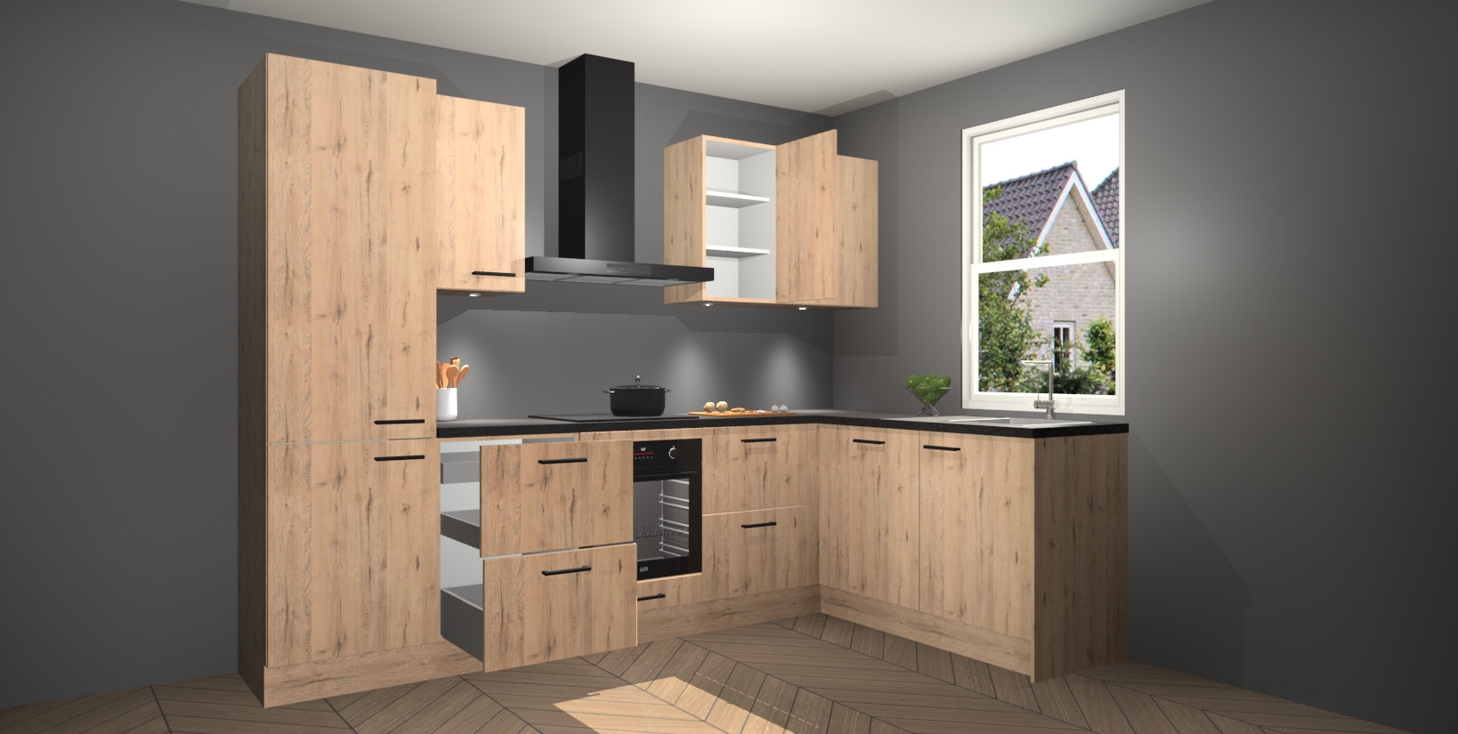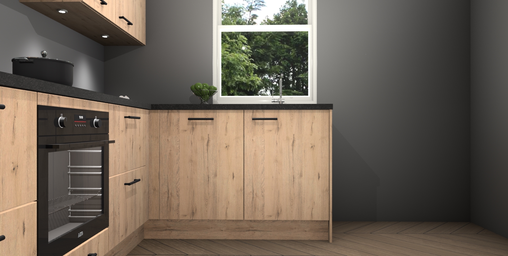 Maak kennis met de trendsettende en luxe Madera Natuur keuken Bazel! Deze uitzonderlijke keuken van Duitse kwaliteit is stijlvol, modern en perfect om elk huis mee op te fleuren. De binnenkant van de kasten worden meegenomen in een bijpassende kleur om een samenhangende eigentijdse esthetiek te voltooien. U zult dol zijn op hoe uw pas gerenoveerde keuken eruitziet met de Madera Natuur editie!