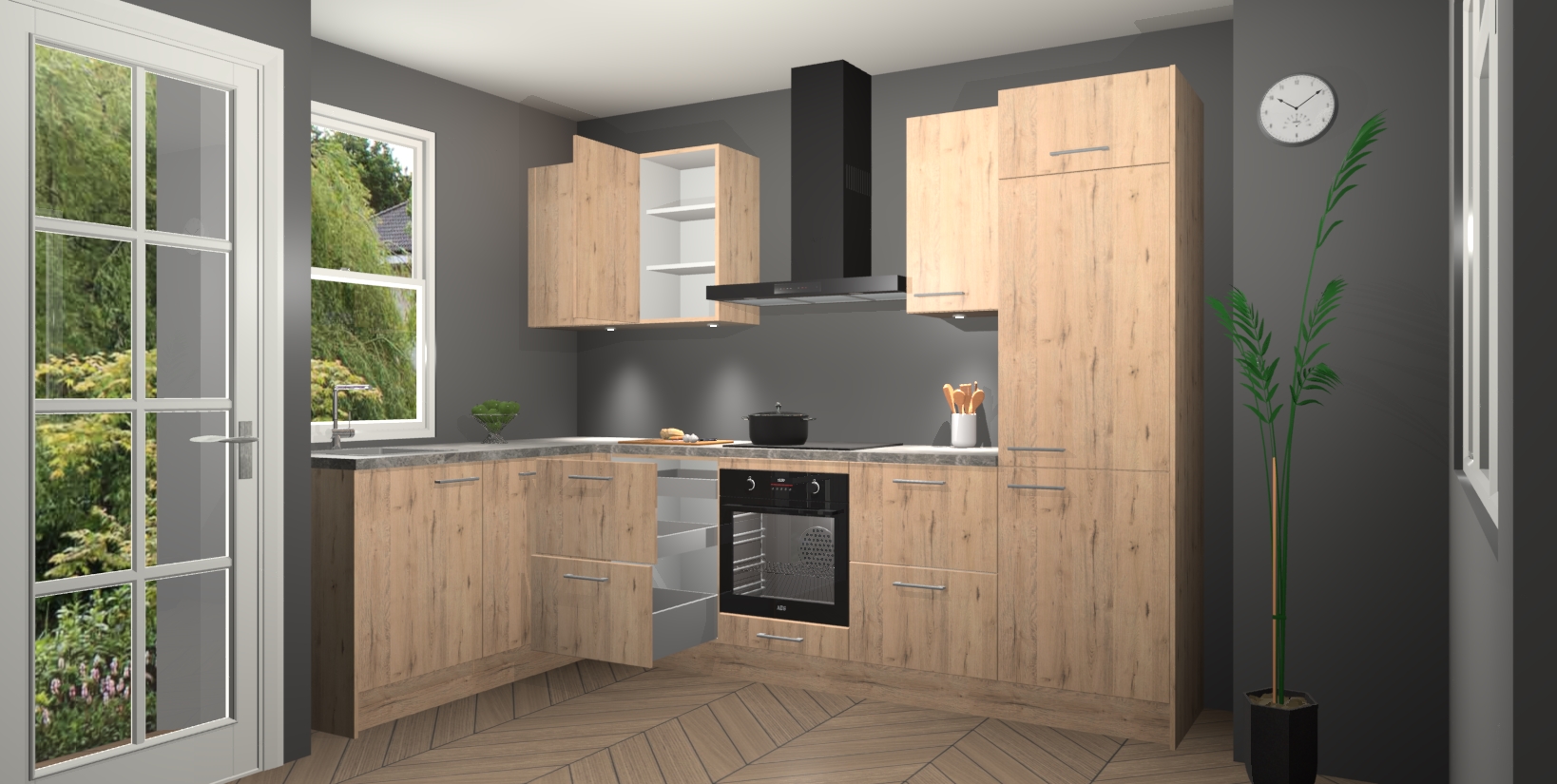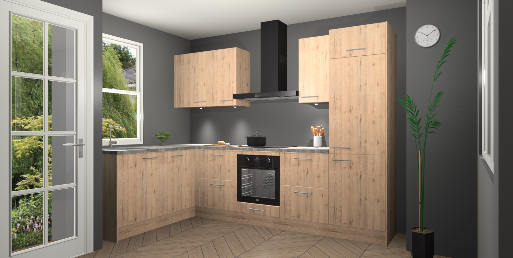 Bent u op zoek naar een strakke, moderne hoekkeuken die uw huis oppept en een moderne uitstraling geeft? Kijk dan niet verder dan de madera natuur keuken Beijing. Deze verbluffende hoekkeuken tilt hedendaags design naar een hoger niveau. Qua stijl is deze chique hoekkeuken voorzien van madera natuur accenten, om een strakke maar opvallende look te creëren. De binnenkant van de kasten is afgewerkt in dezelfde prachtige madera natuur kleur voor extra esthetische aantrekkingskracht.
